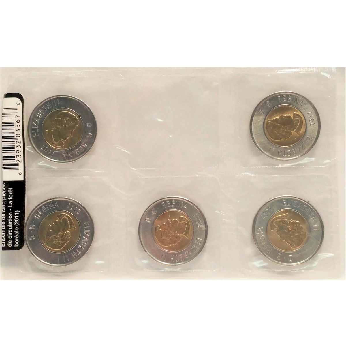 2011 $2 Canadian Legendary Nature - Boreal Forest Circulation 5-coin Pack