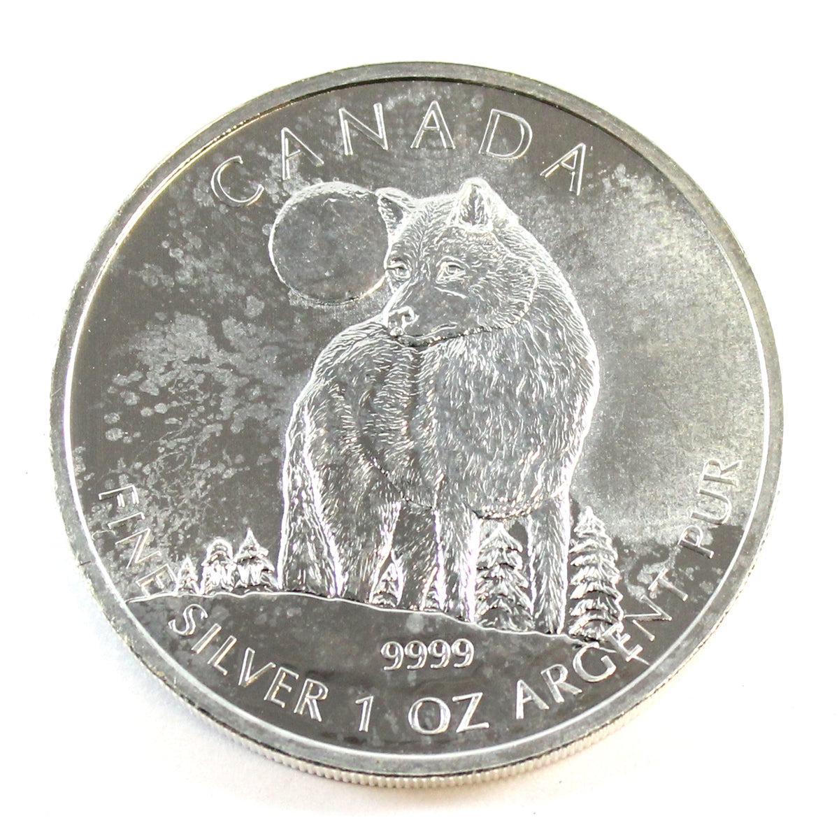 2011 Canada Wolf 1oz. .9999 Fine Silver (toned) No Tax