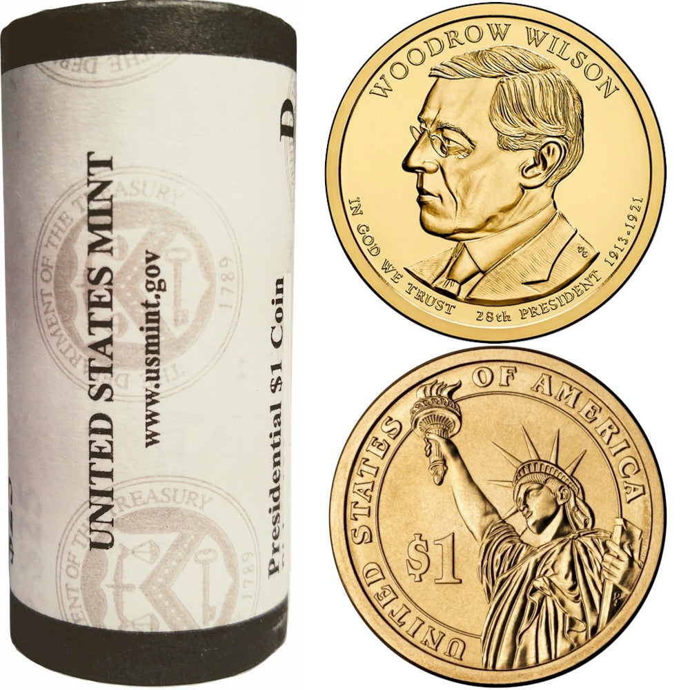 2013 US Presidential Dollar - Woodrow Wilson D - Original Roll of 25pc