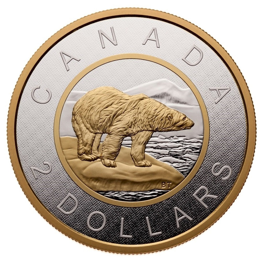 - This 5-ounce fine silver 2-dollar coin features Canadian artist Brent Townsend's version of the coin's iconic polar bear design, first issued with the introduction of the 2-dollar circulation coin in 1996. This design has been used continuously on Canadian "toonies," with a number of notable exceptions.