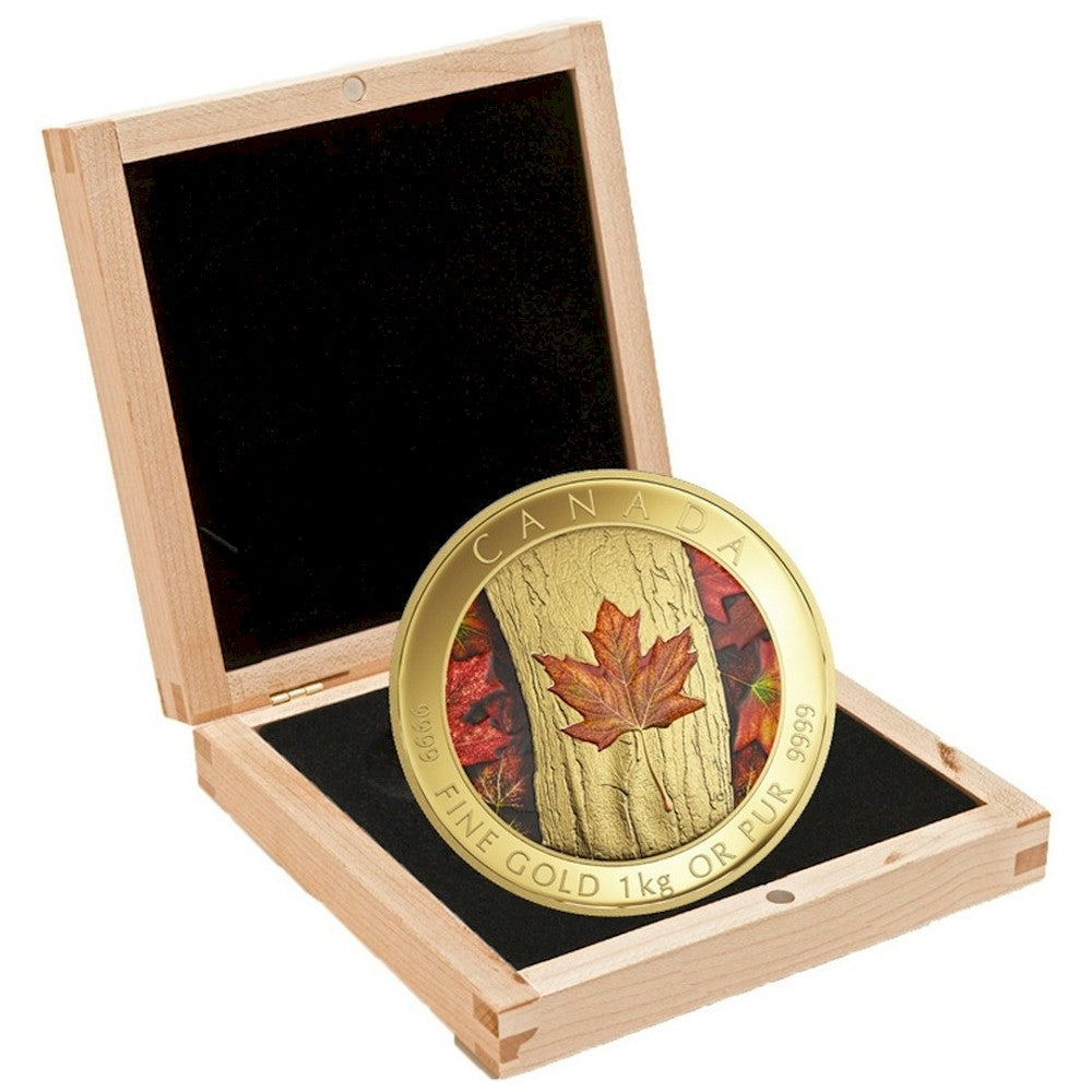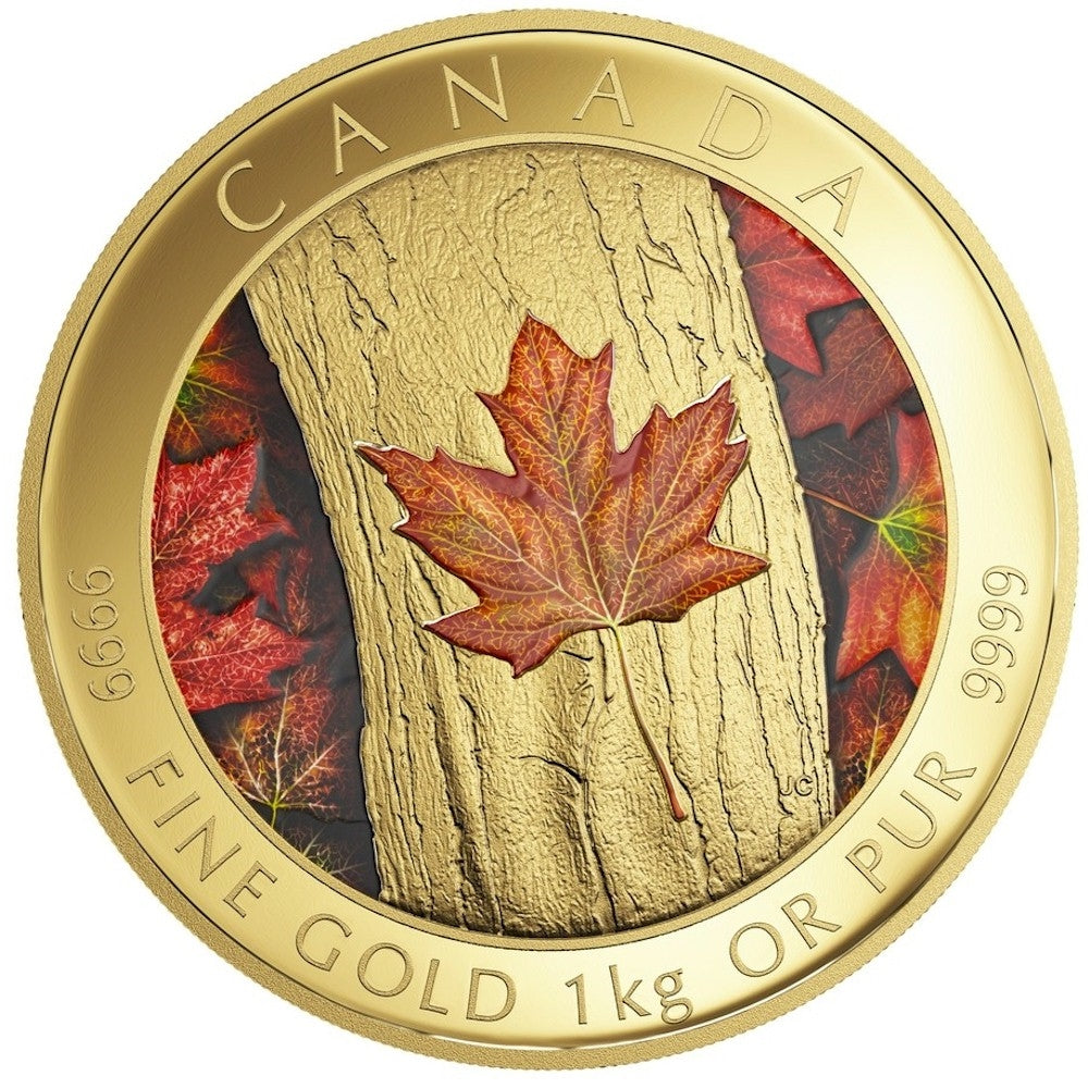 At once mighty and persevering, beautiful and elegant, the maple leaf is a proud national emblem that speaks of the values shared by Canadians, as well as the beauty of the vast landscape. This beloved, colourful icon is the focus of this outstanding one-kilogram gold coin, which artfully combines innovative technology with a breathtaking design.