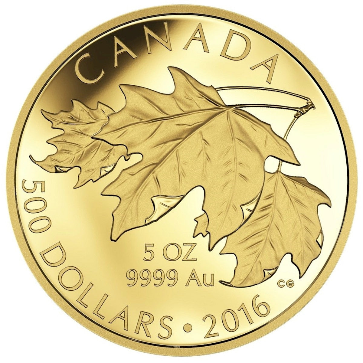 2016 Canada $500 Maple Leaves 5oz. Pure Gold Coin (TAX Exempt)