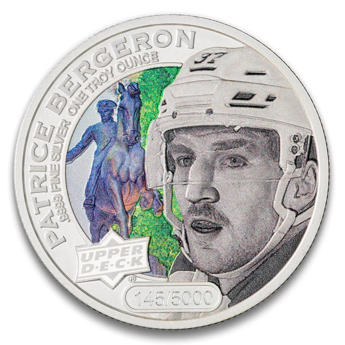 2017 Cook Islands $5 Coloured Upper Deck: Patrice Bergeron 1oz. Silver Coin (No Tax) - #/5000 Mintage