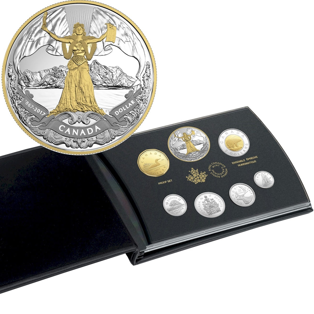 Strong, wise and hopeful, Canada embodies the ideals and aspirations of a nation that has proudly come into its own since its creation in 1867. Through the symbolic female figure featured on the reverse, this proof silver dollar presents a powerful personification of Canada - of its history, its people and its spirit. The image of Canada is the visual embodiment of a nation that is today celebrating its 150-year journey, while looking ahead to the future.
