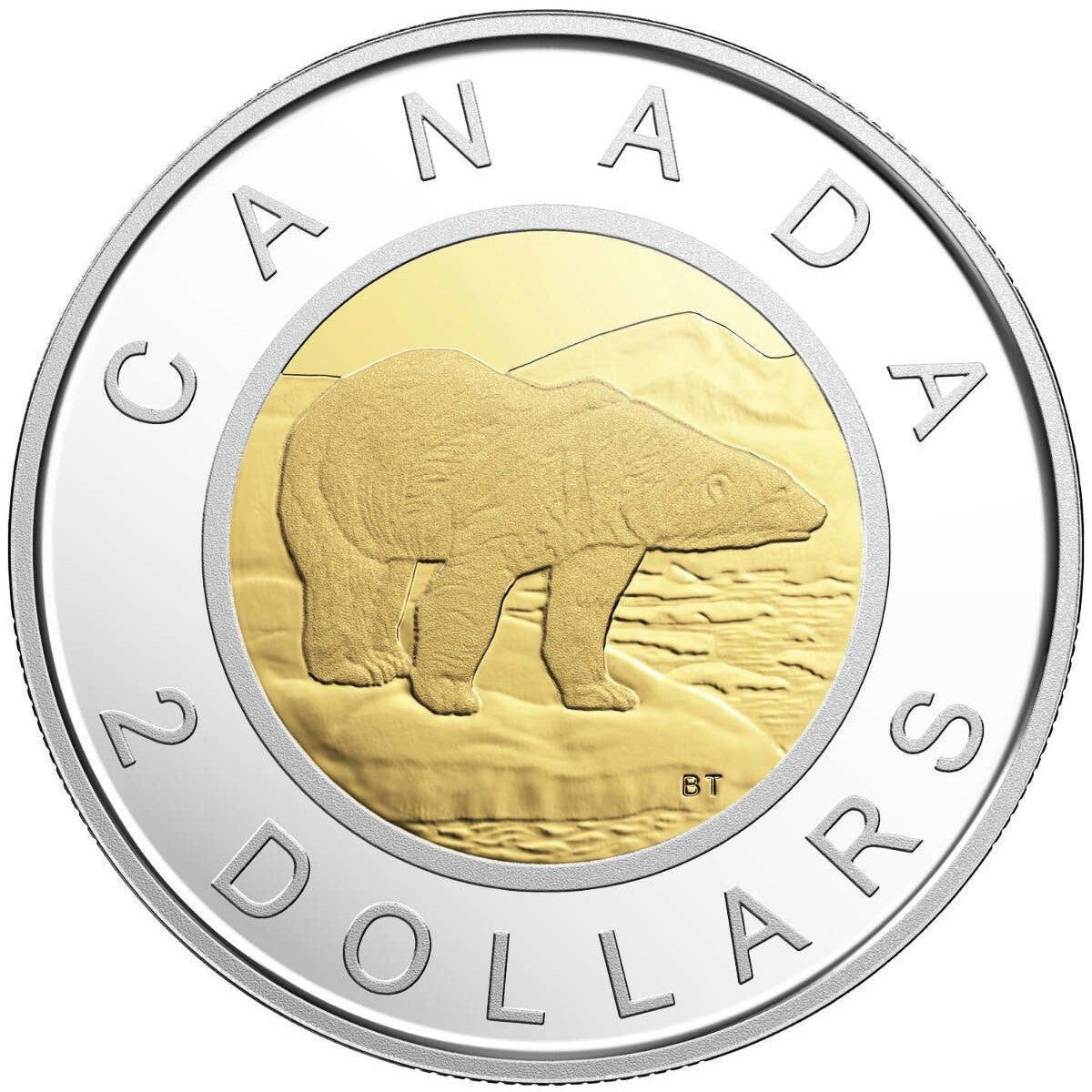 • 2-dollar (toonie) coin struck in 99.99% pure silver with selective gold plating