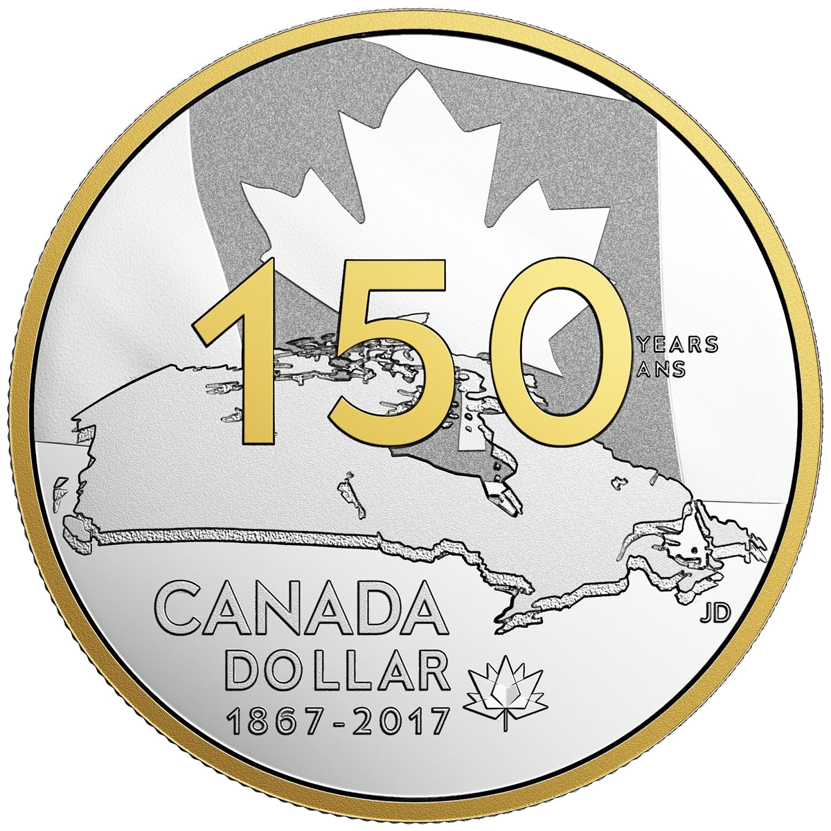 • A one-of-a-kind Special Edition Proof Dollar: Gold plating adds a rich, golden sheen to the rim and the "150" engraved on the proof dollar, while frosting gives the flag an ethereal appearance-a visual representation of the immense national pride that fills the air during this special year!