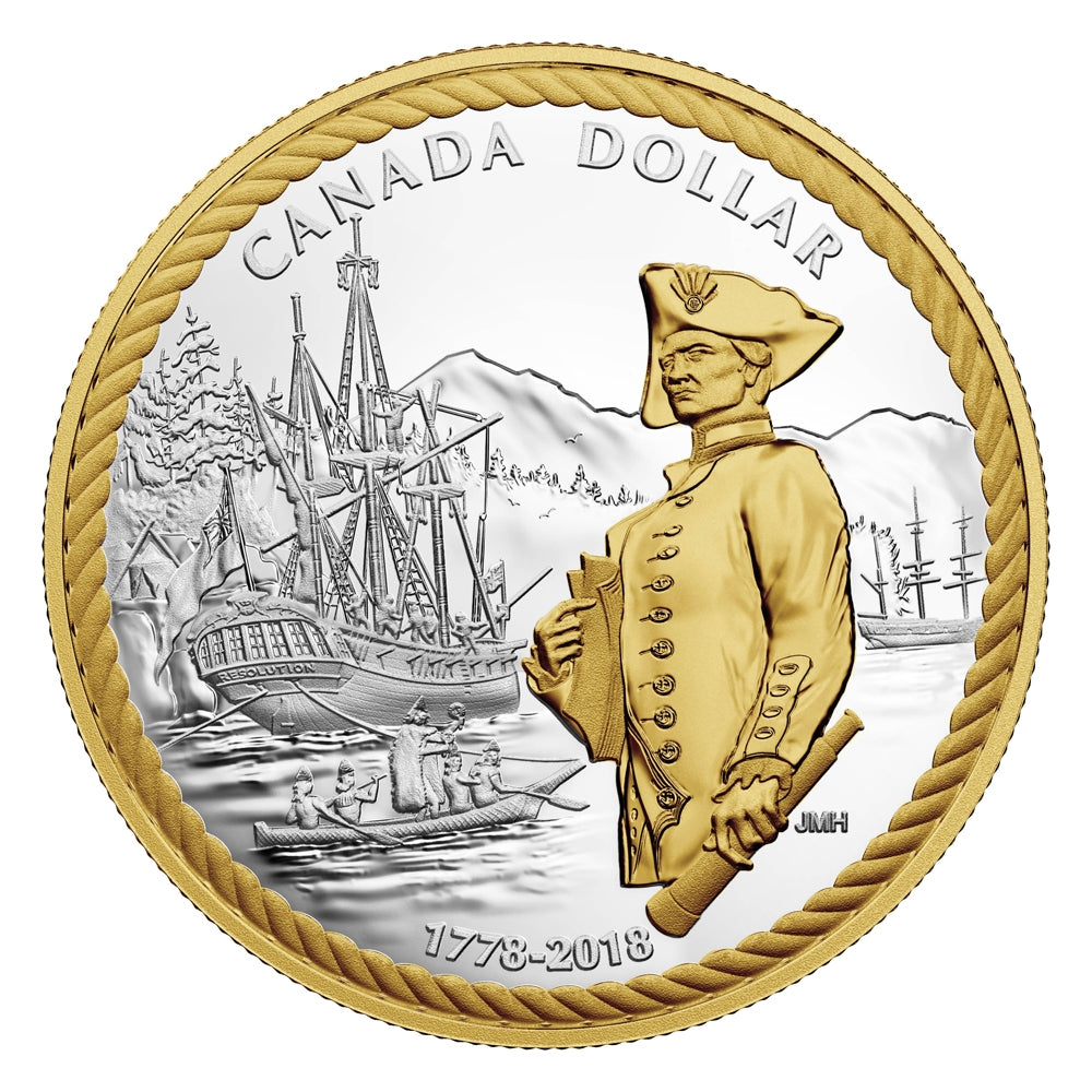 Canada's history is rife with tales of explorers, and the seafaring Captain James Cook (1728-1779) is one of the most storied of all. From the Bering Strait to the Antarctic Circle, and many of the Pacific isles in between, the British navigator charted more terra incognita than any other in his time. This fine silver proof dollar commemorates the 240th anniversary of Cook's arrival at the summer home of the Nuu-chah-nulth people, at Nootka Sound, which drew more explorers and traders to Canada's western shores.