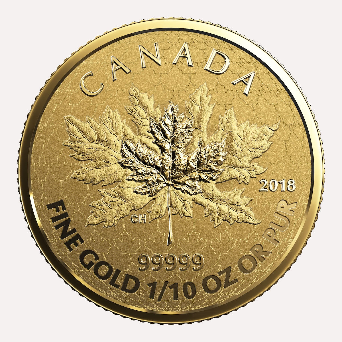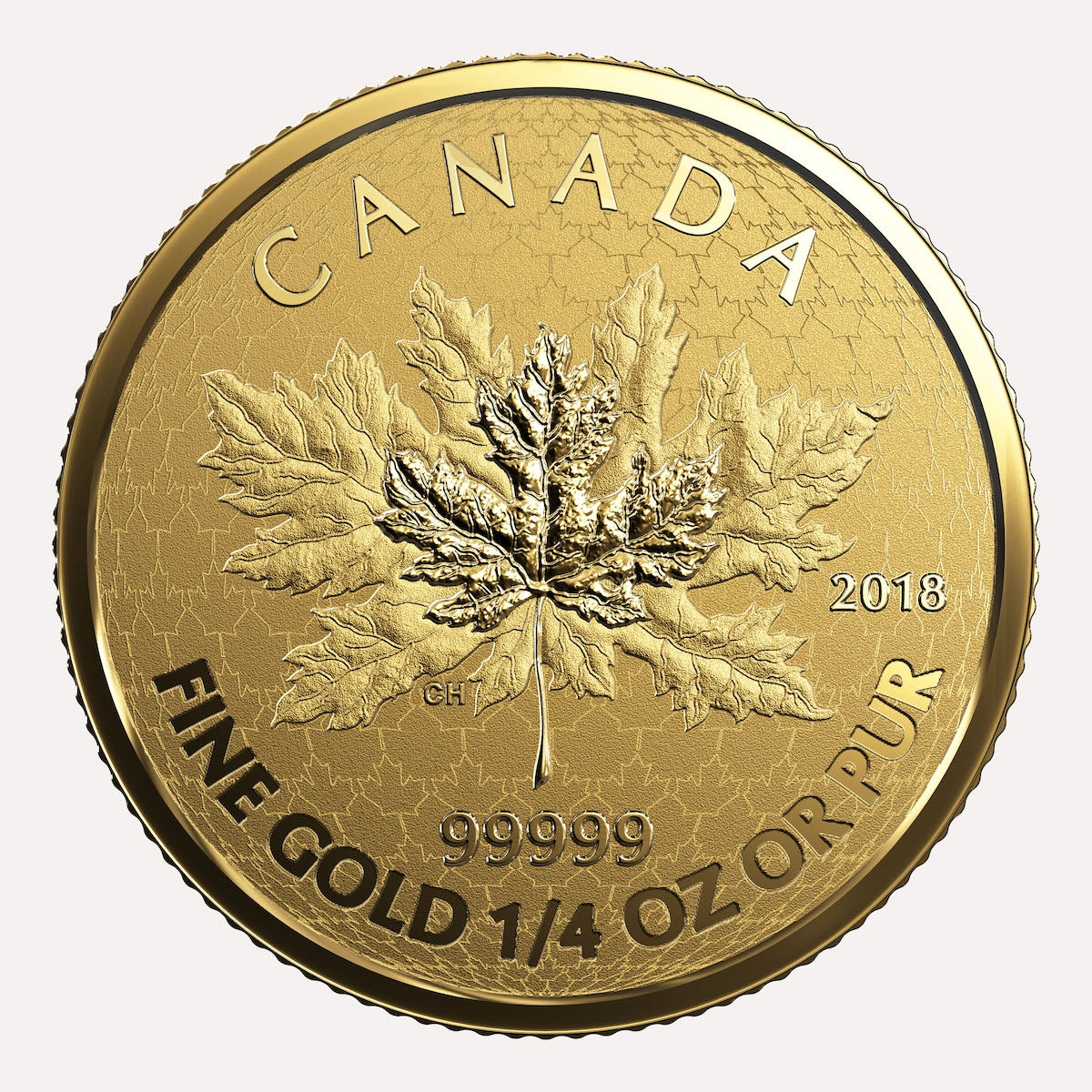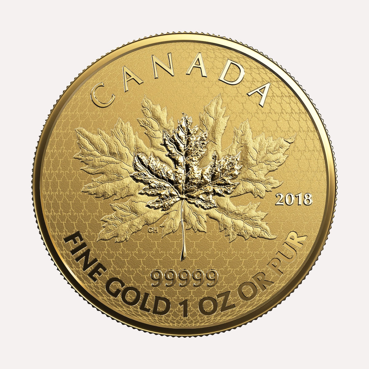 • Enhanced by a reverse proof finish, the engraved maple leaves are particularly striking against the micro laser-engraved leaves that fill the field on both the reverse and the obverse.