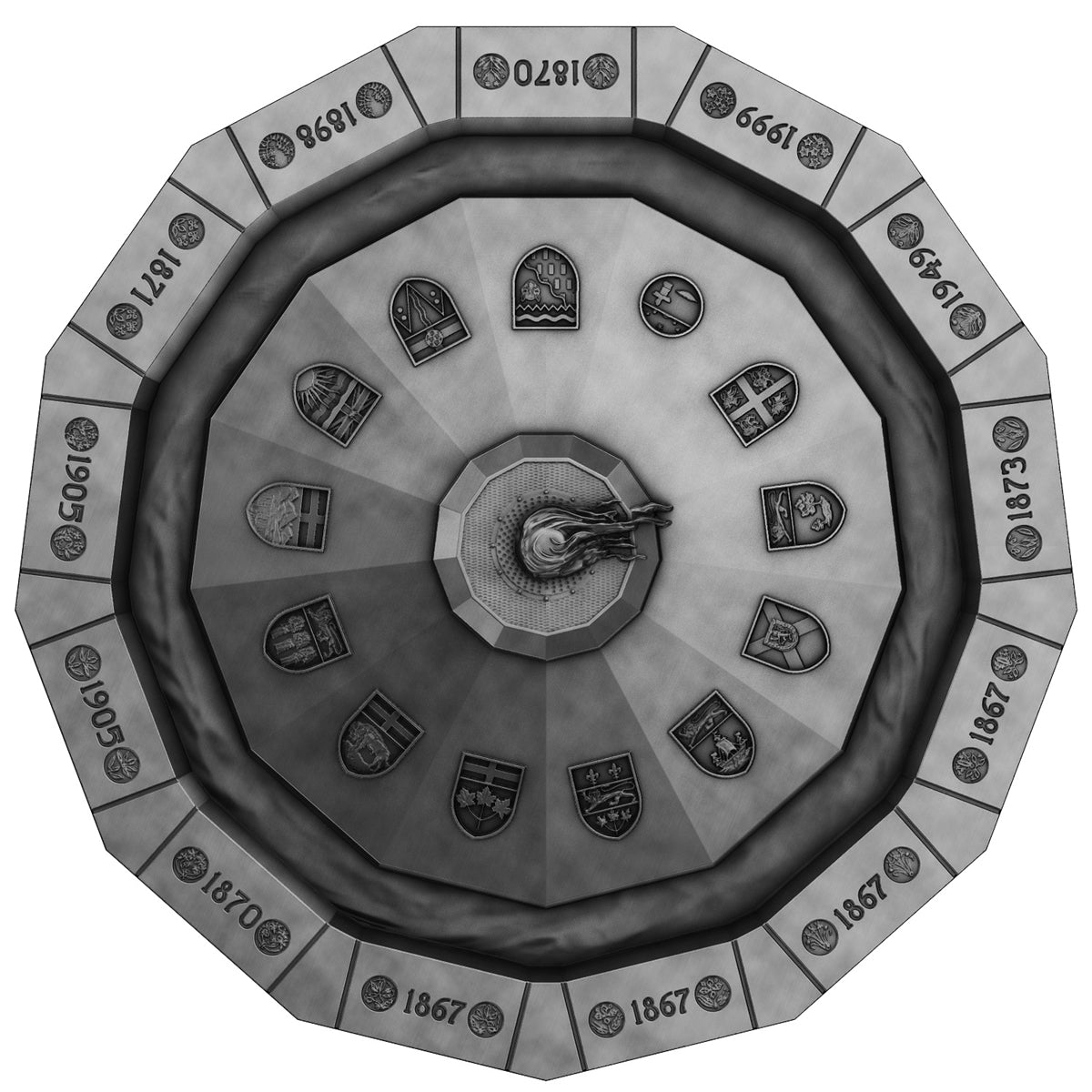 New coin shape, new capsule. The Royal Canadian Mint's first tridecagon coin has 13 sides, just like the monument. The new shape also means a new shaped capsule!