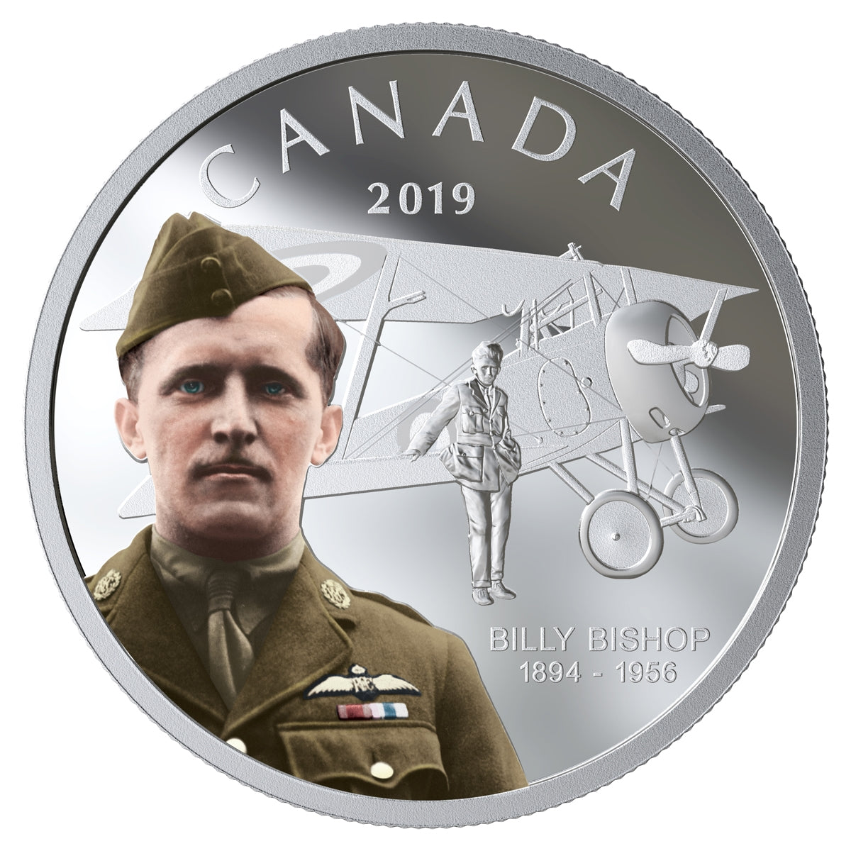 This Billy Bishop 1 oz. Pure Silver 2019 Coloured $20 Coin celebrates the life as well as wartime accomplishment of Canada's greatest flying ace.