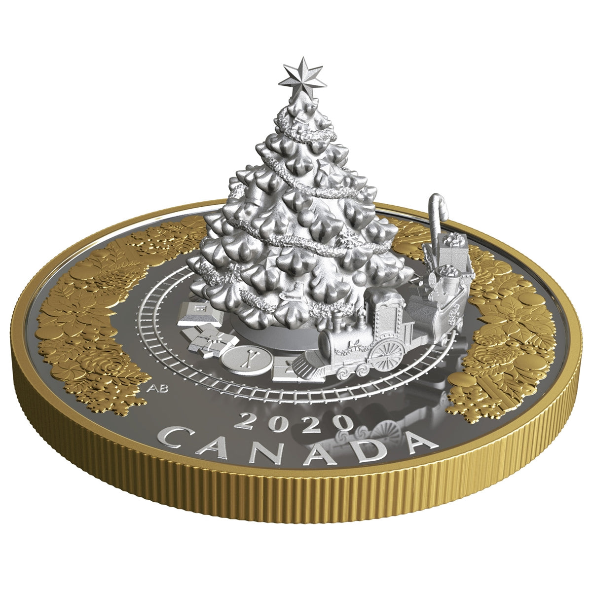 • TWO cast silver elements: Cast in sterling silver, the Christmas tree commands attention as it rises up from the engraved design. But the crowning touch isn’t at the top of the tree; instead, look at the base of the tree, where the toy train (also cast in sterling silver) travels along the engraved tracks whenever you tilt the coin.
