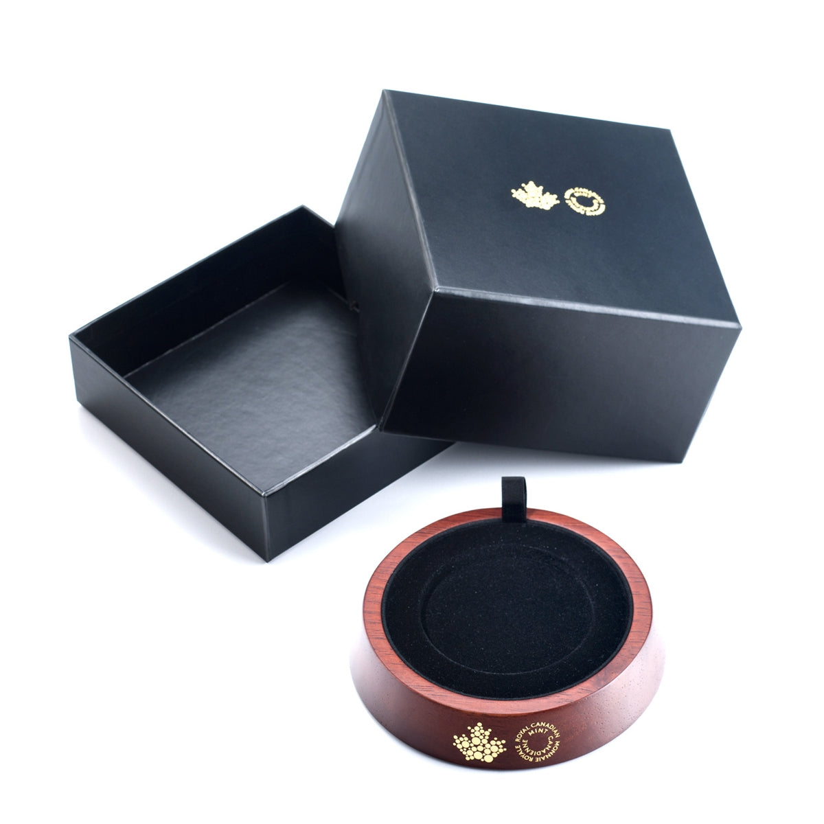 A beautiful sterling silver Christmas tree rises up from the centre of our latest innovative and interactive 99.99% pure silver coin. The large format 5 oz. coin isn’t just a pedestal for our tree—we’ve added engraved touches and selective gold plating to make this an enchanting holiday scene. But the true star of this design might be the sterling silver toy train; tilt the coin and the little train moves along the tracks that surround the gifts at the base of the tree.