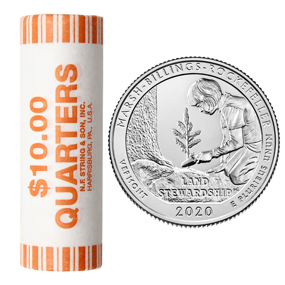 2020 D USA National Parks Quarters - Marsh Billings-Rockefeller Park Original Roll of 40pcs