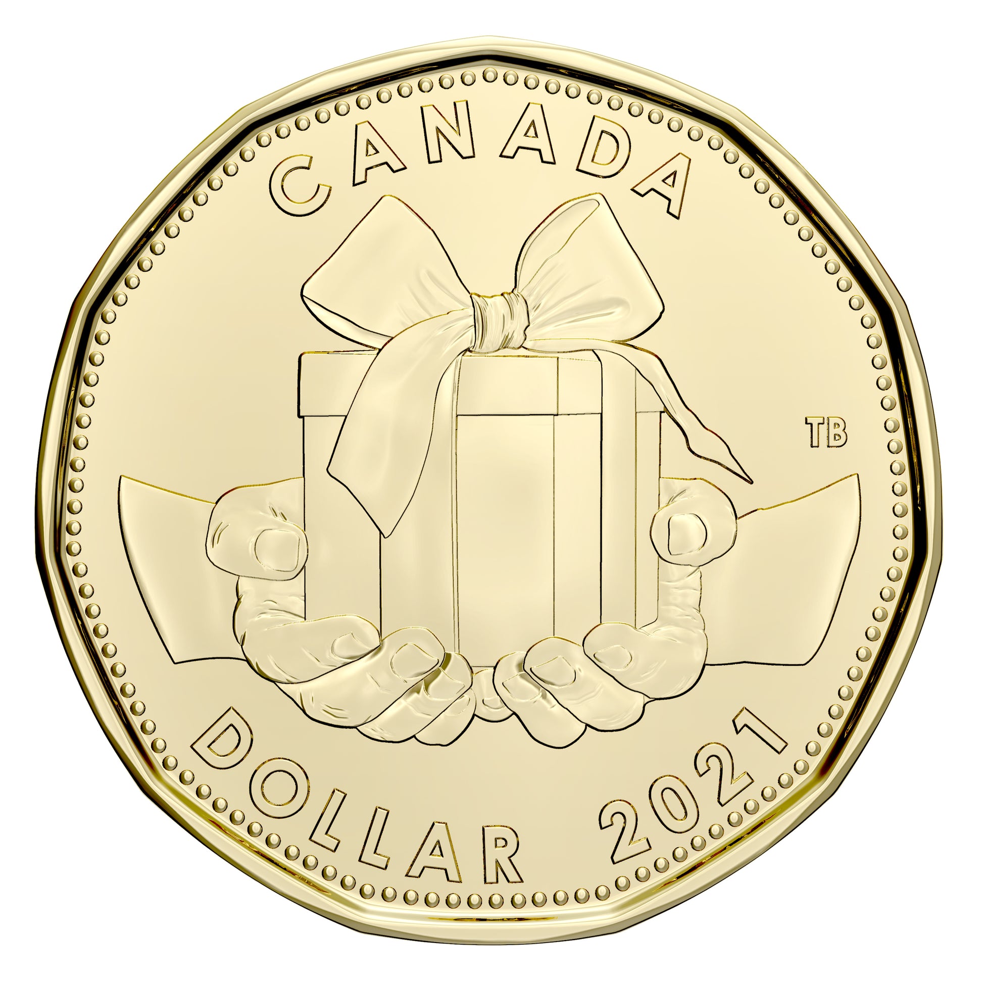 This coin is carefully removed from the 2021 Canada Birthday Gift Set. The reverse of the 2021 Birthday Canada Dollar coin features two hands presenting a beautifully wrapped birthday present. The obverse of this coin depicts the new effigy (uncrowned) portrait of Queen Elizabeth. There is no better suited gift for a birthday than the 2021 Birthday Canada Dollar!