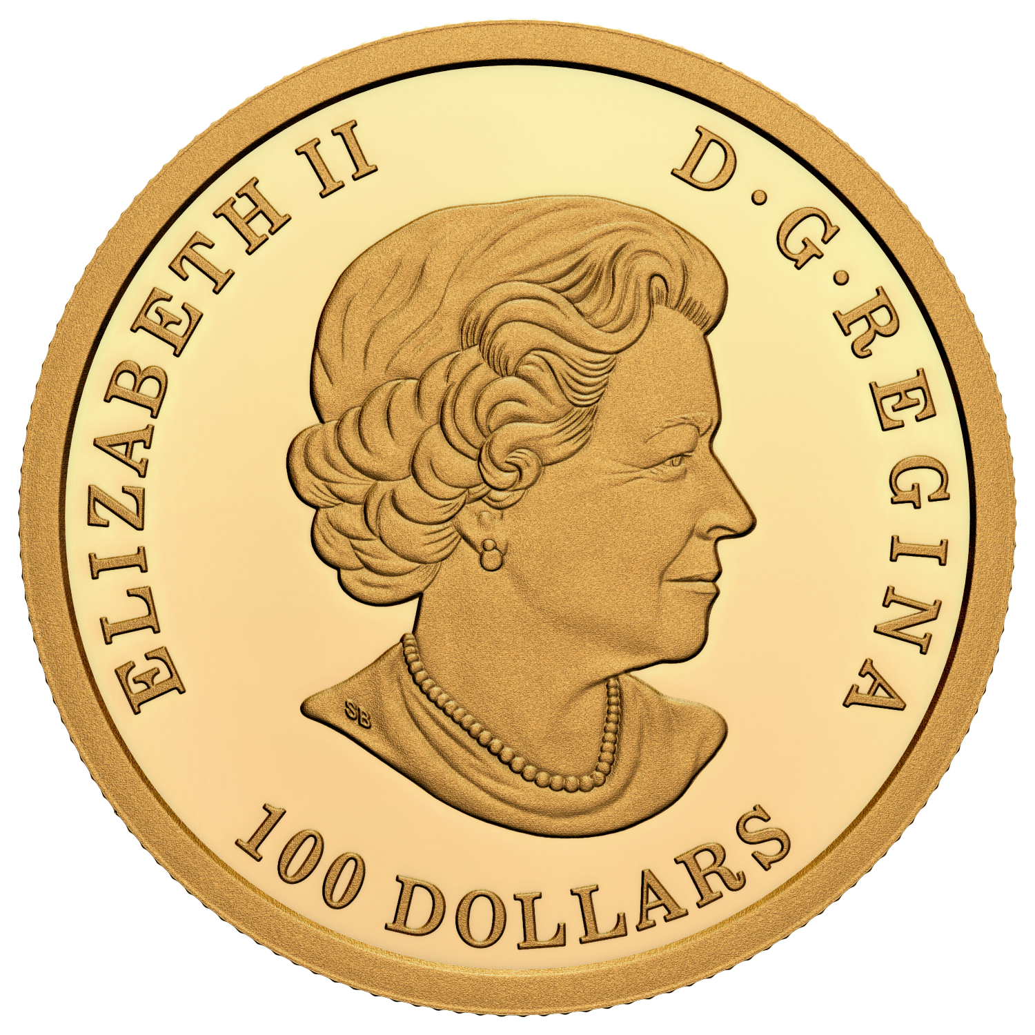 Inspired by the Chinese legend of the Jade Rabbit, the reverse design by artist Aries Cheung celebrates the Year of the Rabbit by showing the zodiac animal in a composed stance. Water is the dominant element in 2023 and it is represented by windmill-like wave patterns—the “wind” and “water” that is feng shui, which helps bring about more health and prosperity. In addition to these waves, wing-like motifs adorn the Rabbit’s ears and shoulders. Flowering plants and cinnamon leaves appear on one side of the Rabbit, while Moon Palace—the residence of Chang’e, the goddess of the moon—appears on the other side, where it is surrounded by auspicious cloud patterns. The reverse includes the word “CANADA”, the Chinese character for “Rabbit”, the year “2023” and the face value, “100 DOLLARS”. The obverse features the effigy of Her Majesty Queen Elizabeth II by Susanna Blunt.