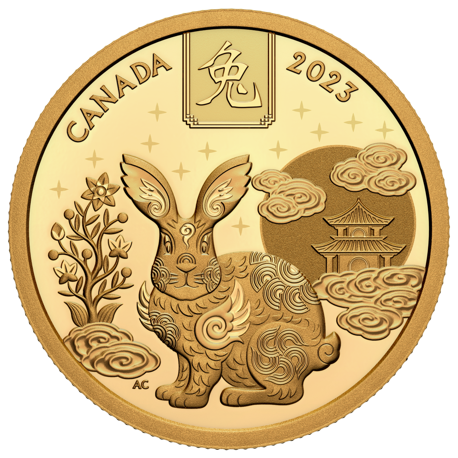 • Second coin in the Royal Canadian Mint's $100 Pure Gold Lunar Series! Celebrate the Year of the Rabbit (2023) with the second coin in an annual series that honours the 12 signs of the Chinese zodiac.