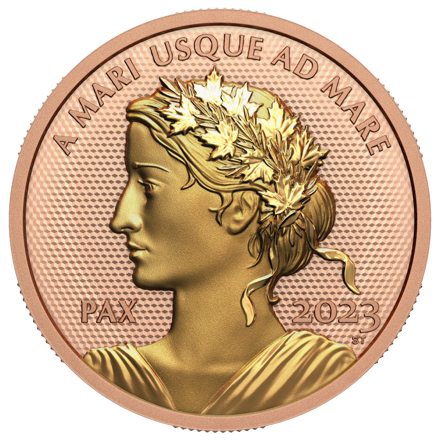 Each Peace Dollar is a powerful representation of Canada’s ongoing dedication to universal human rights and world peace. Before becoming Prime Minister of Canada, Lester B. Pearson was awarded a Nobel Peace Prize in 1957 for organizing the first UN peacekeeping force. In the decades since, UN peacekeepers have helped de-escalate conflicts and save lives throughout the world. That legacy of peace and international cooperation is reflected on the reverse of this 1oz. 99.99% pure gold coin. It combines three extraordinary features: Ultra High Relief (UHR), rose gold plating (new for 2023) and a specially engineered pattern, which pulses with hope for a peaceful and prosperous future.