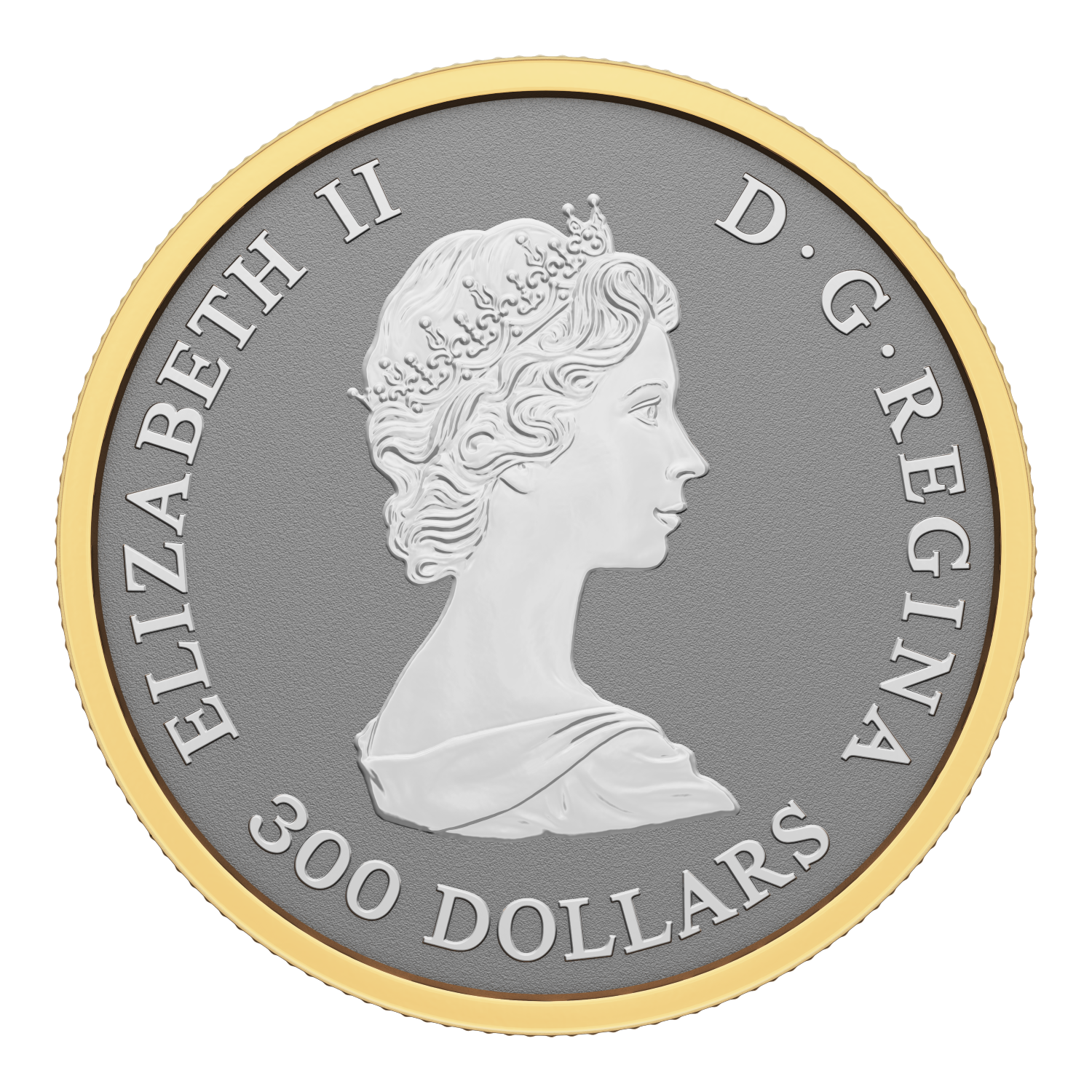 The reverse design by artist Luc Normandin features an elegant bouquet composed of sugar maple (Acer saccharum) leaves. Yellow gold plating on the rim and on two of the four leaves creates a striking colour contrast, while the dates “1988-2023” commemorate the 35th anniversary of the first Platinum Maple Leaf bullion coin. The rim is also gold-plated on the obverse, which, like the first coin issued in 1988, features the effigy of Queen Elizabeth II by Arnold Machin.