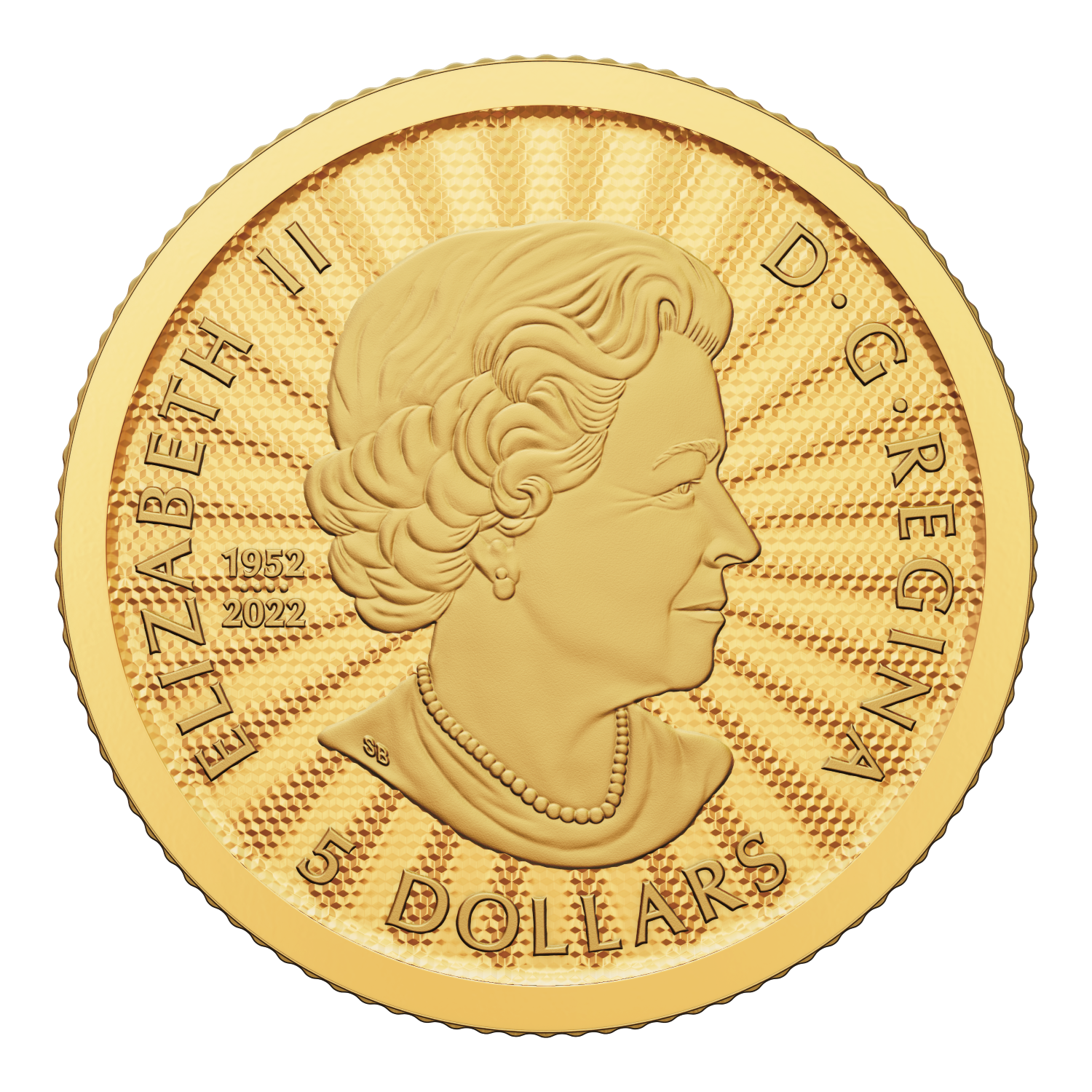 Based on a design by Canadian artist Pierre Leduc, each coin’s reverse features a portrait of a polar bear (Ursus maritimus) mother with two cubs in an Arctic setting. One cub has caught the mother’s attention by standing and leaning against her, while a second cub remains close by. Marked by a “mother and cub” paw print privy mark, the tender scene is set against vivid radial lines that create a dramatic sunburst finish. The reverse includes the coin’s purity and weight, the word “CANADA”, and the year “2023”. The obverse features a sunburst finish behind the effigy of Queen Elizabeth II by Susanna Blunt. The obverse also bears a special marking that includes four pearls symbolizing the four effigies that have graced Canadian coins and the double date of her reign.