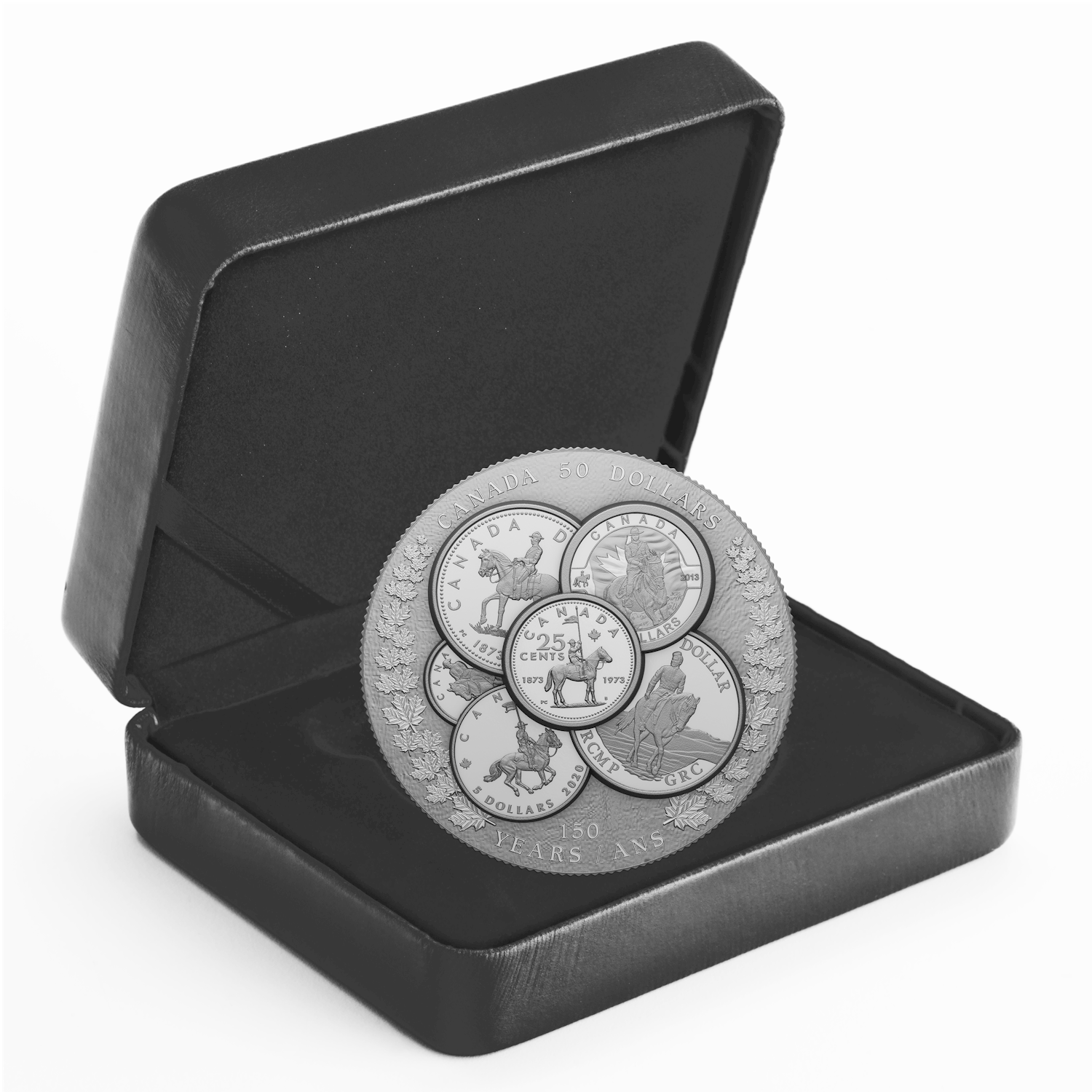 Designed for passionate collectors and struck in Ultra High Relief (UHR), this compilation mixes numismatic and commemorative tributes from our past, and highlights RCMP anniversaries that were previously commemorated on our coins, including the 25-cent piece from the force’s centennial year (1973). Each of these reproduced designs is a variation of the iconic RCMP horse and rider image—the venerable “Mountie” image that is recognized worldwide.