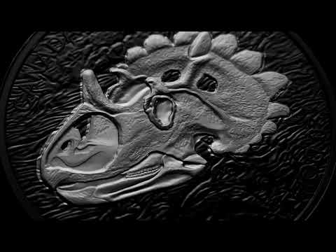 - ENGRAVED TEXTURE! Beneath the rhodium plating on the coin’s reverse, the engraved texture represents the thrill of discovery: it mimics the textured appearance of hard rock in which the Regaliceratops skull was encased.