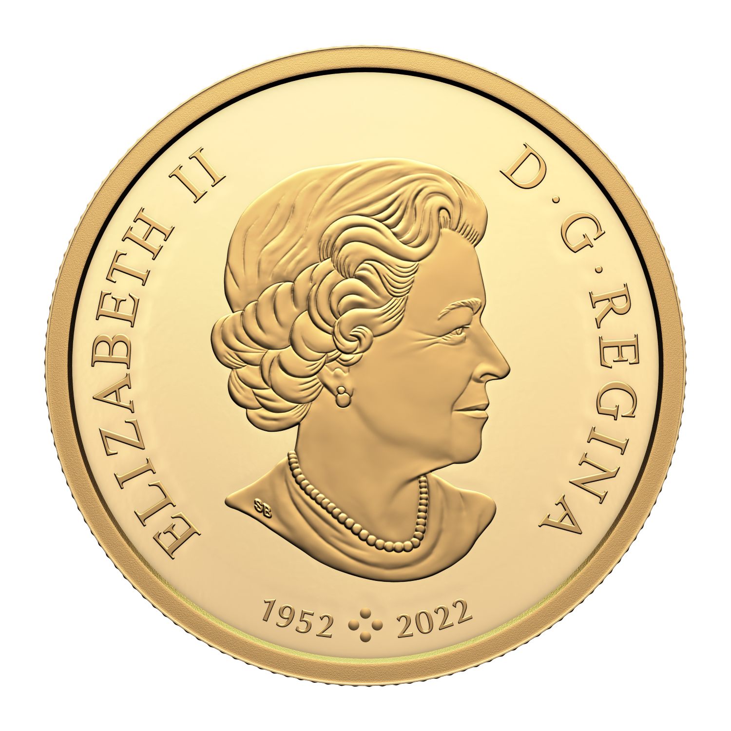 The reverse design by Canadian artist Bonnie Ross features a three-quarter view of a two-mast topsail schooner heeled over and with all sails set to catch the wind. The reverse includes the word “CANADA”, a face value of “200 DOLLARS” and the year “2024”. The obverse features the gold-plated effigy of Queen Elizabeth II by Susanna Blunt. The obverse also bears a special marking that includes four pearls symbolizing the four effigies that have graced Canadian coins and the double date of her reign.