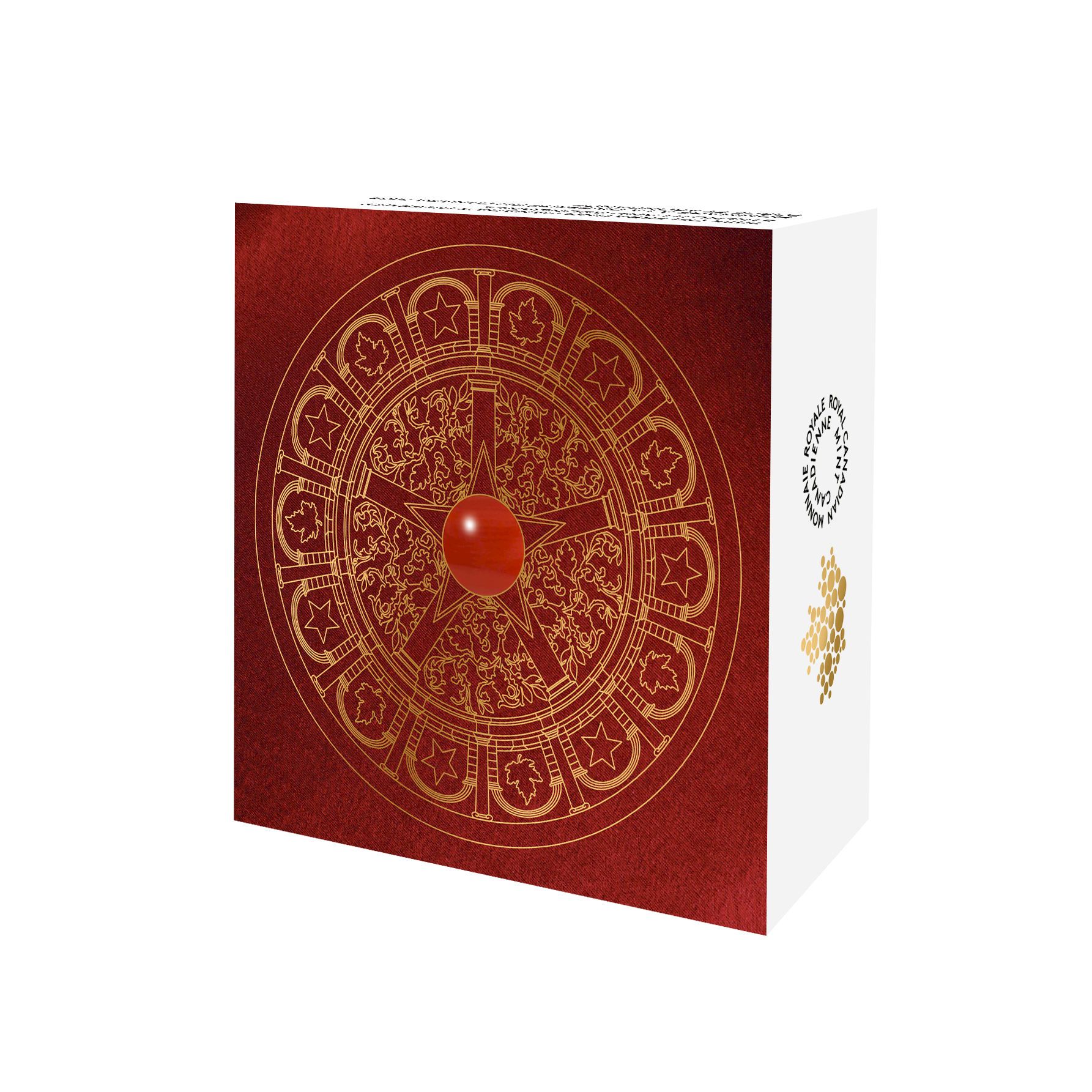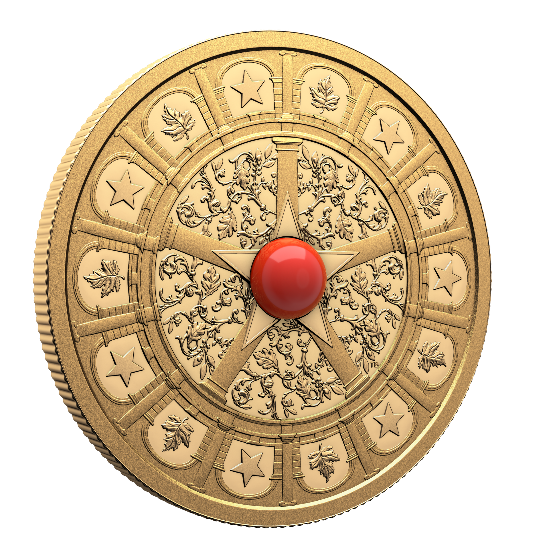 The spirit and culture of the Italian people are alive and well in Canada, and they are well represented on this 99.99% pure gold coin. The coin’s immaculately engraved reverse features an artistic arrangement of deeply symbolic elements that surround the Stella d’Italia positioned at the centre of the design, where the five-pointed emblem is adorned with genuine Italian red coral—a precious symbol of good luck and protection in Italian tradition.