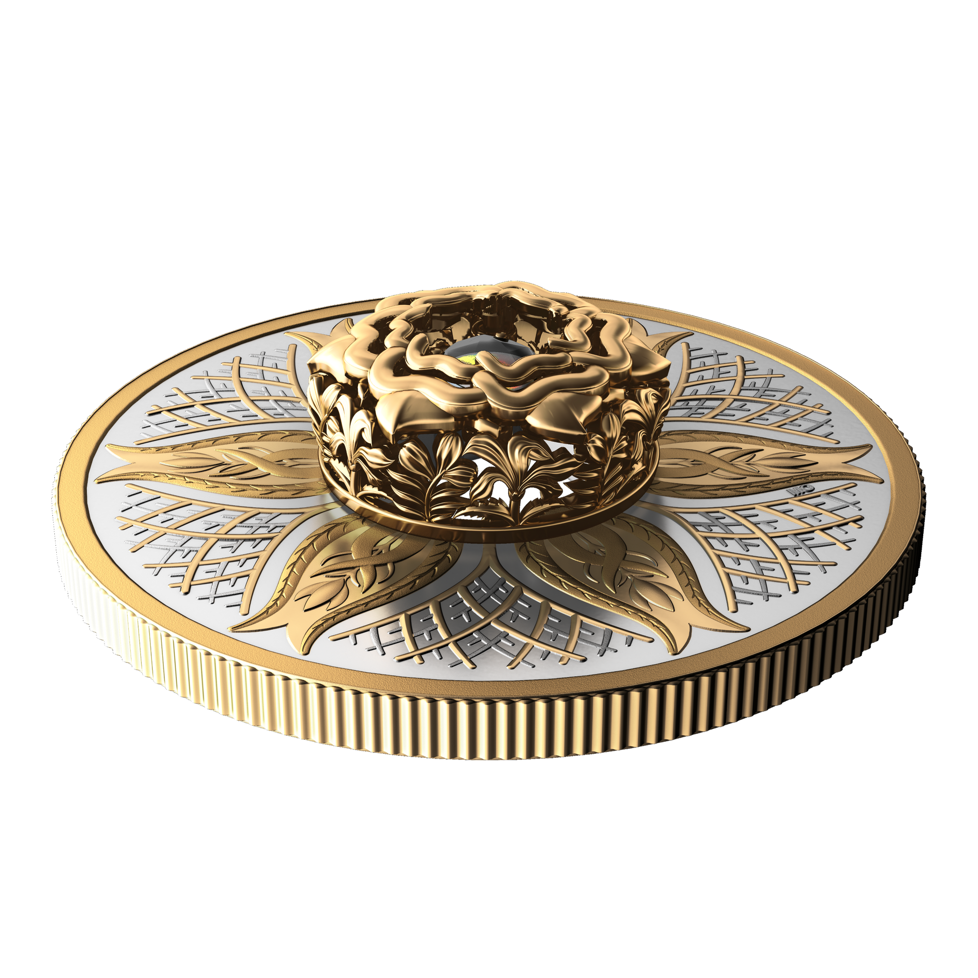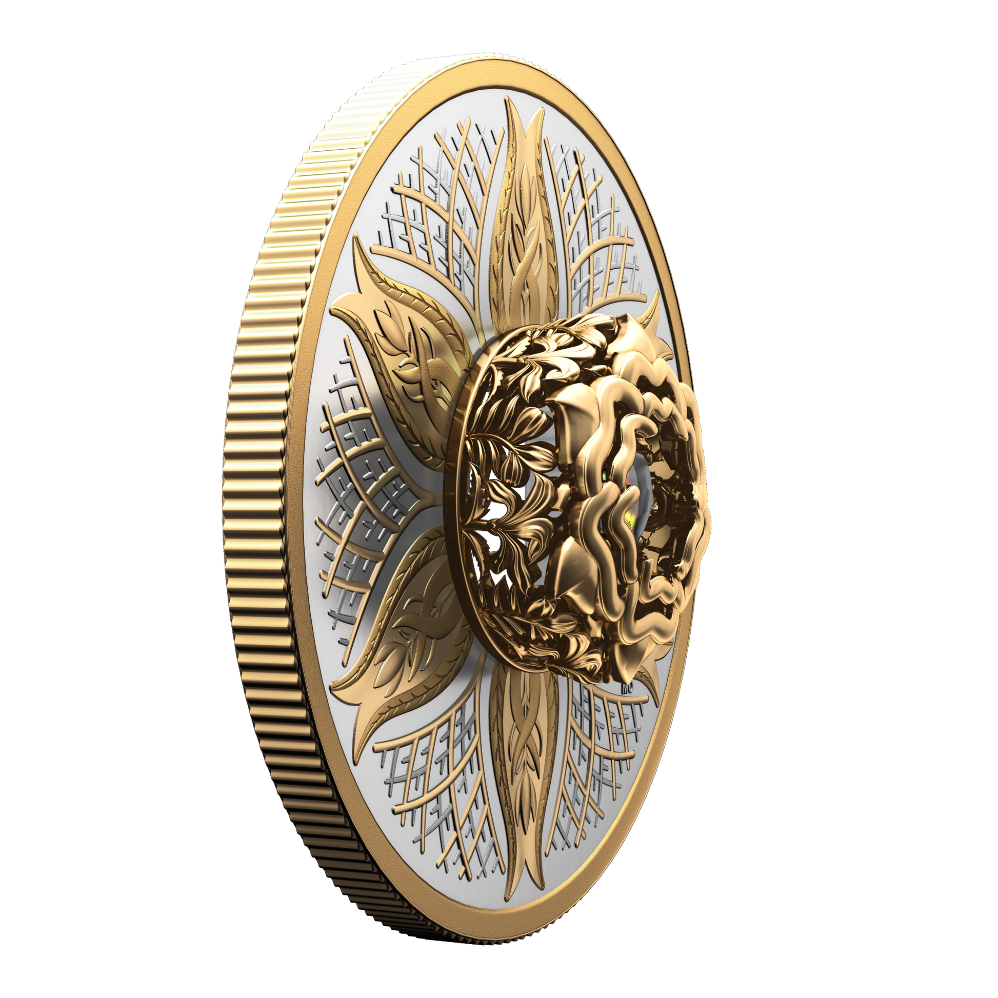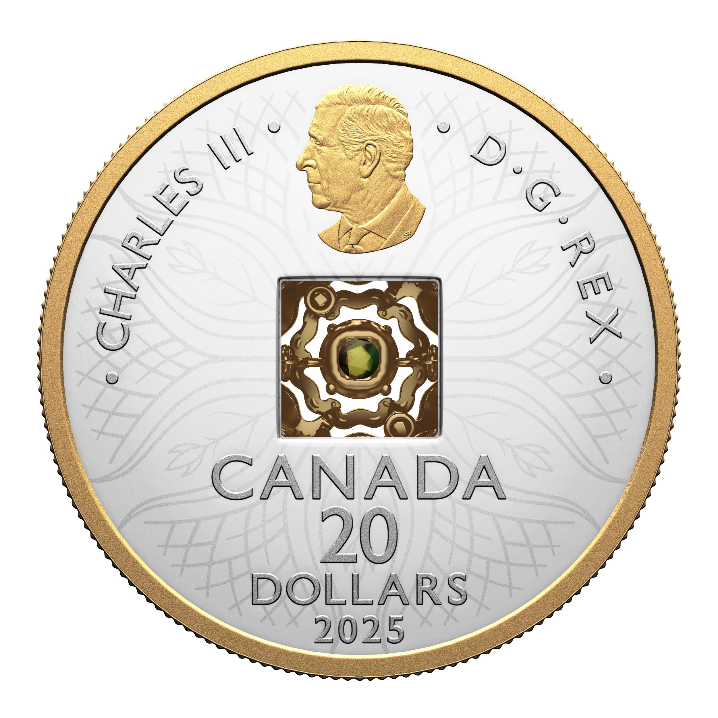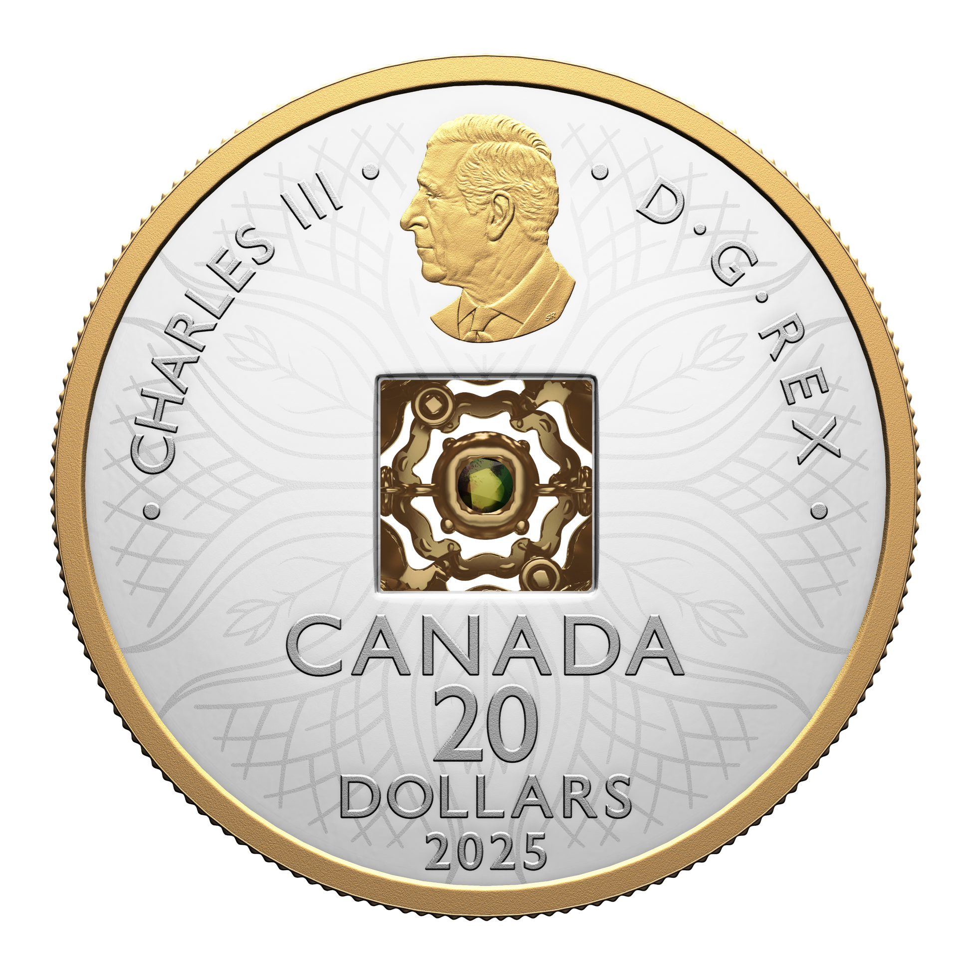 From the Royal Canadian Mint, the second Dancing Ammolite coin continues the series’ celebration of nature’s most fundamental elements by focusing on the one that grounds and nourishes us all: Earth. The life-sustaining element that lies beneath our feet is beautifully represented here by the blossoming motif that evokes nature’s cyclical rebirth and renewal, and by the branches and roots that are symbolic of steadfast, enduring growth. Selectively plated with yellow gold on the coin’s reverse, these engraved elements surround the ammolite mounted at the centre, where the rare Canadian gemstone embodies the rhythm of life, bouncing and flashing its lively colours with every movement.