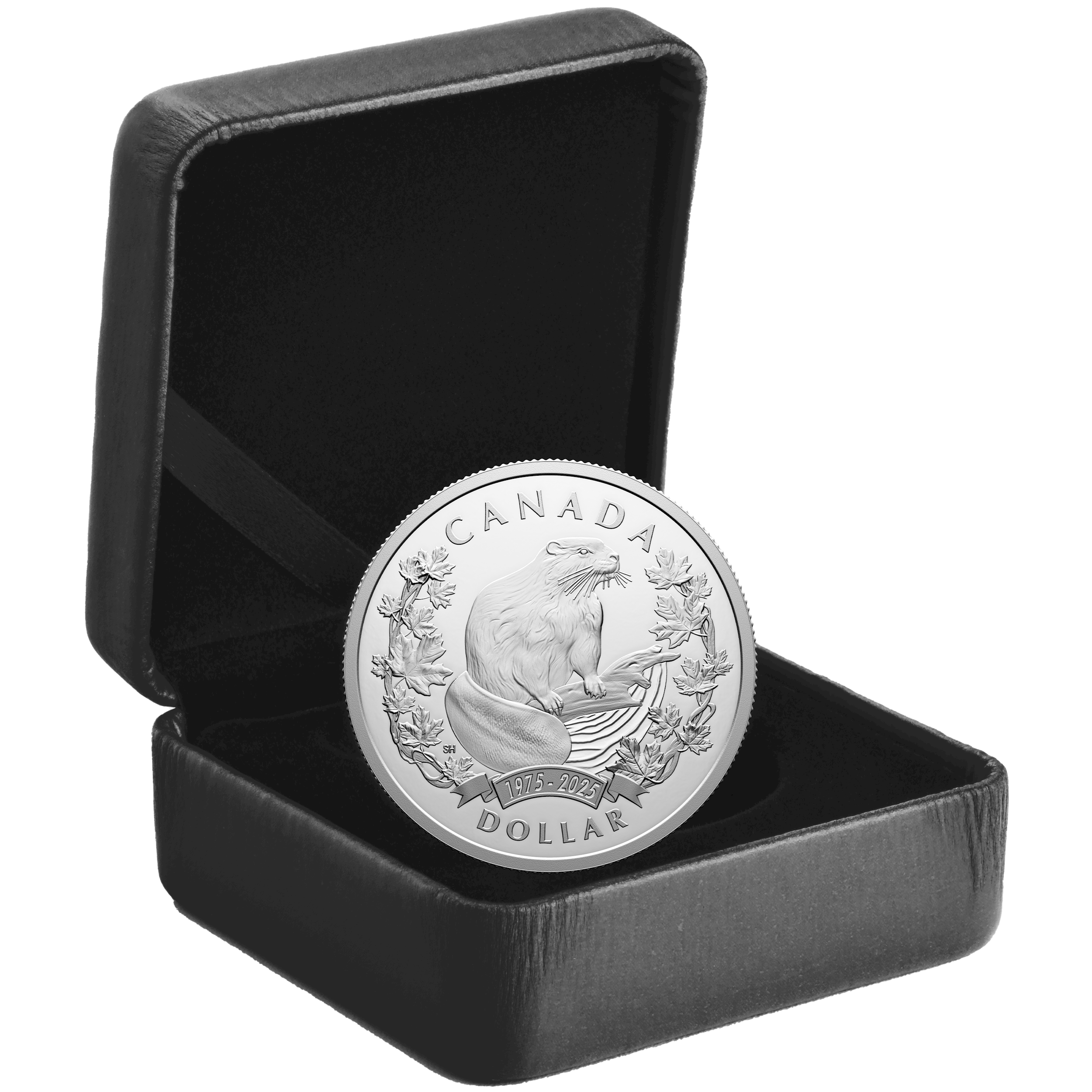 In 2025, the 50th anniversary of the National Symbol of Canada Act (1975) serves as a moment to reflect on the beaver’s incredible legacy. Its likeness is captured on this Special Edition Proof Dollar, where it is surrounded by branches of maple leaves that reflect the beaver’s importance to our nation’s story and identity.
