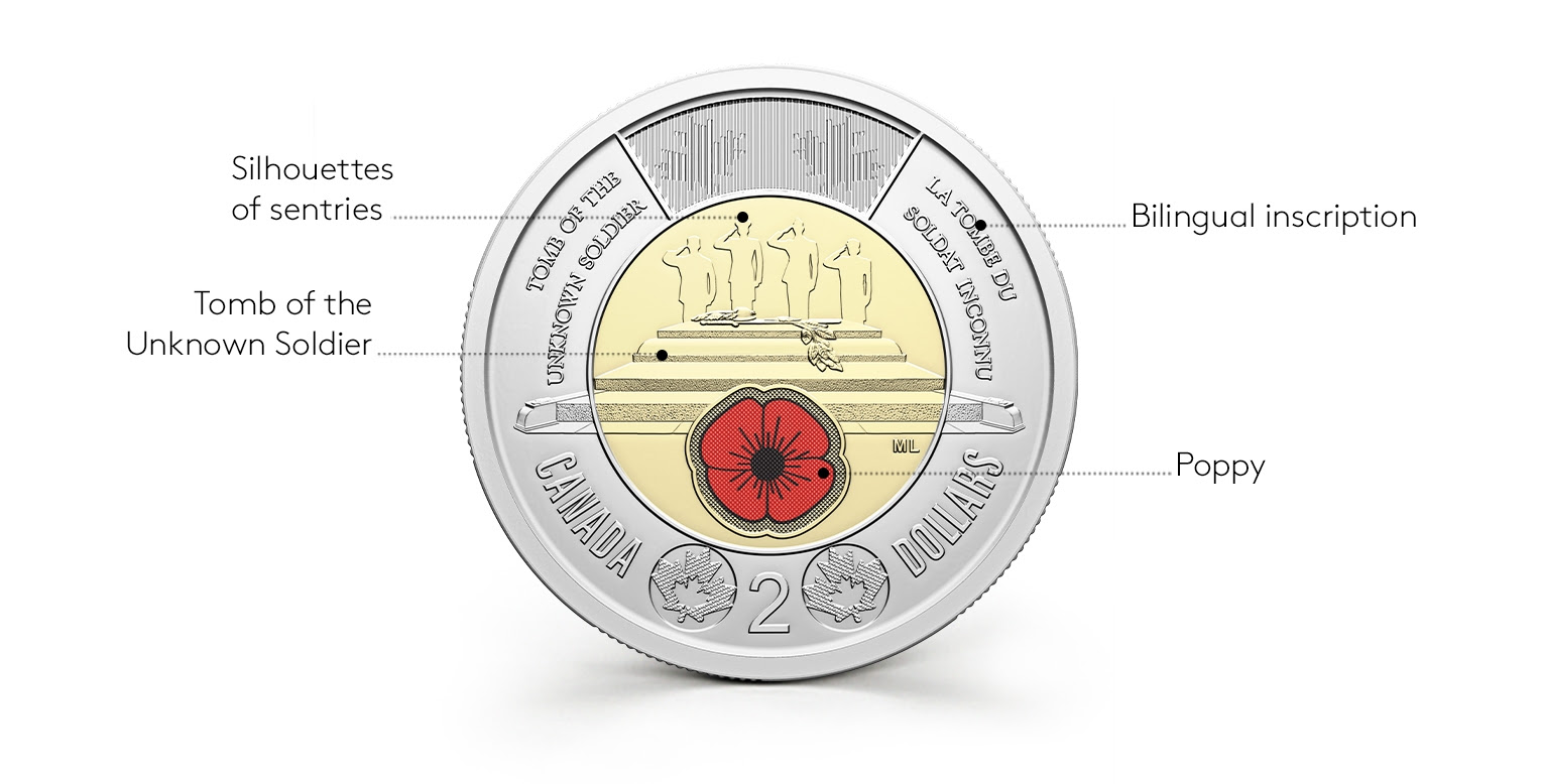 - A 25th anniversary. The $2 Honouring Canada’s Unknown Soldier commemorative circulation coin commemorates the 25th anniversary of the repatriation of Canada’s Unknown Soldier and their reinterment at the National War Memorial in Ottawa. In the spirit of remembrance, the coin design honours those who serve, and those who have fallen.