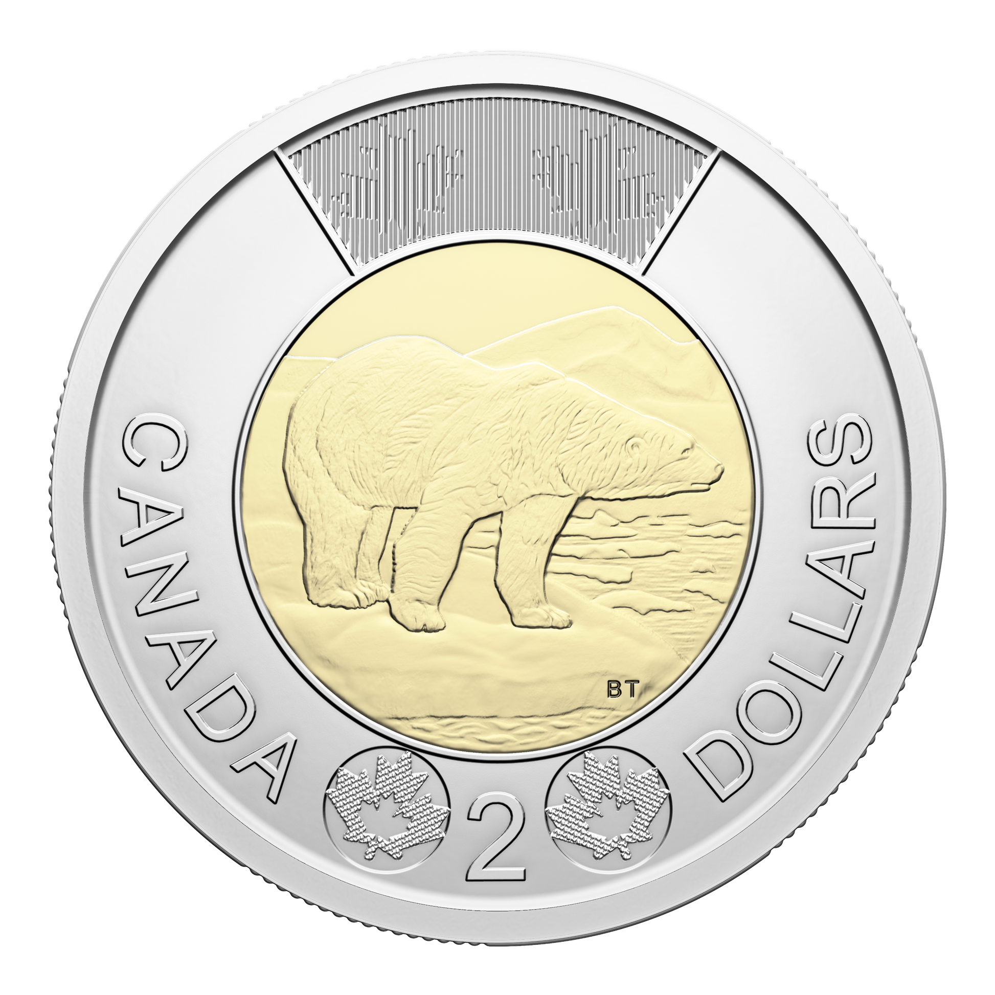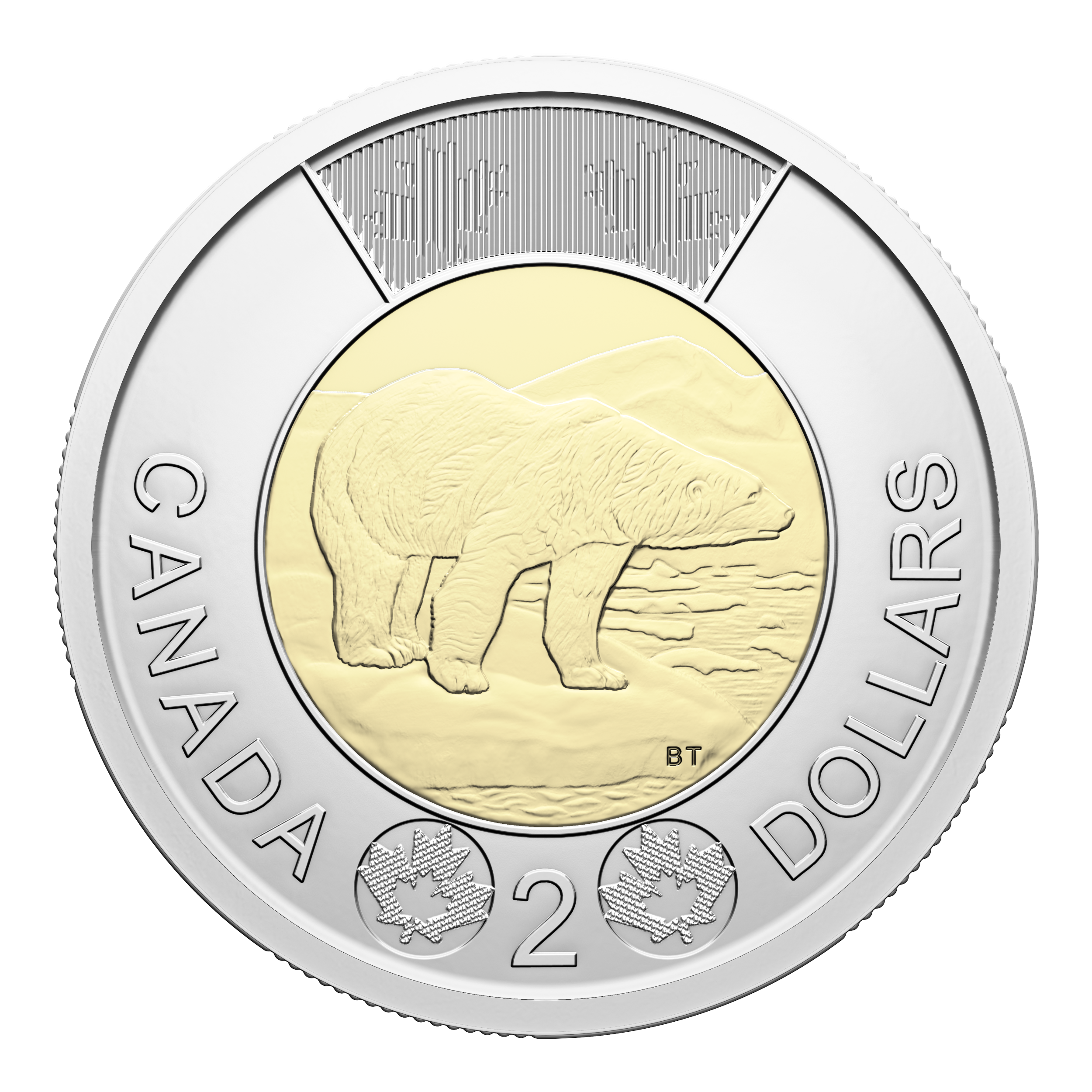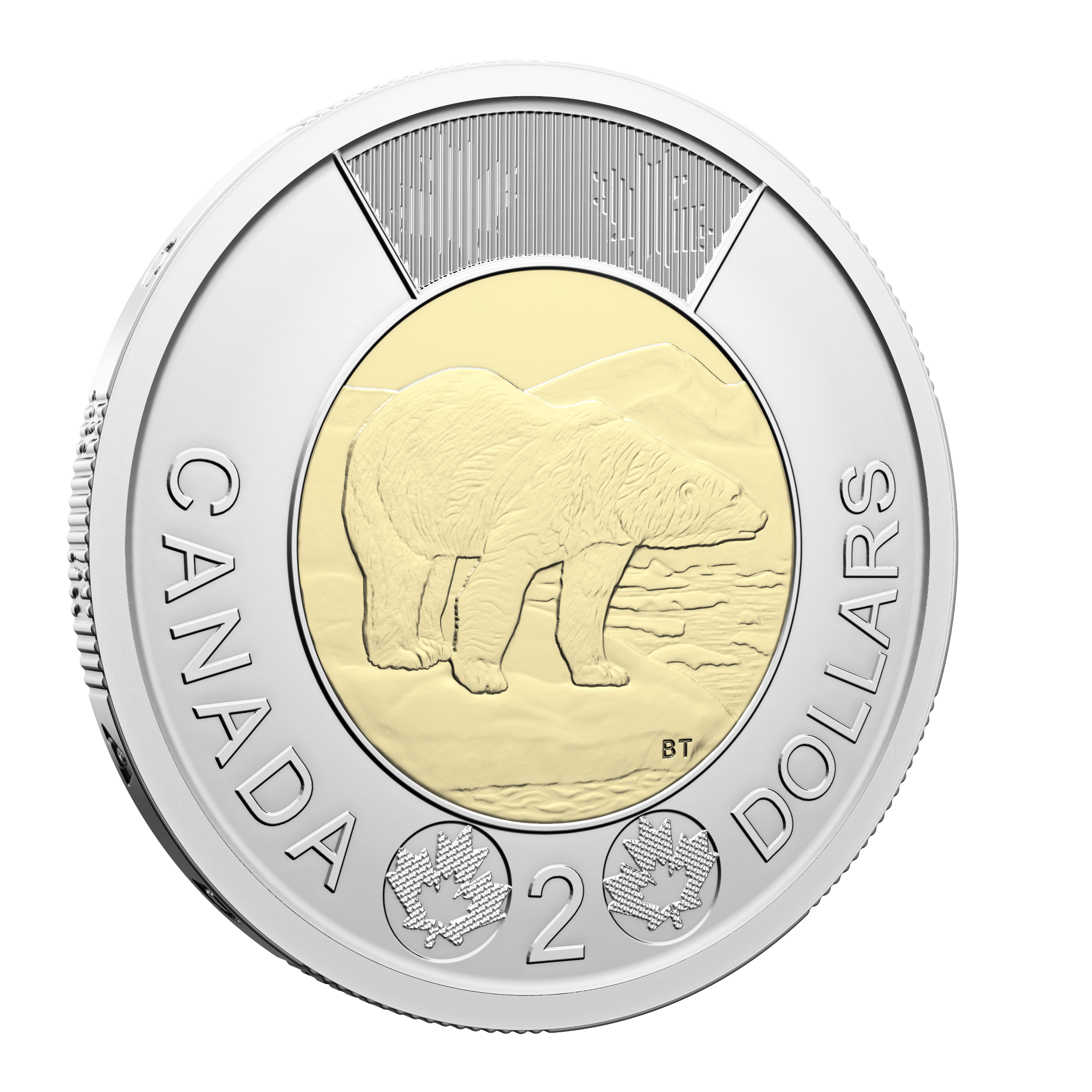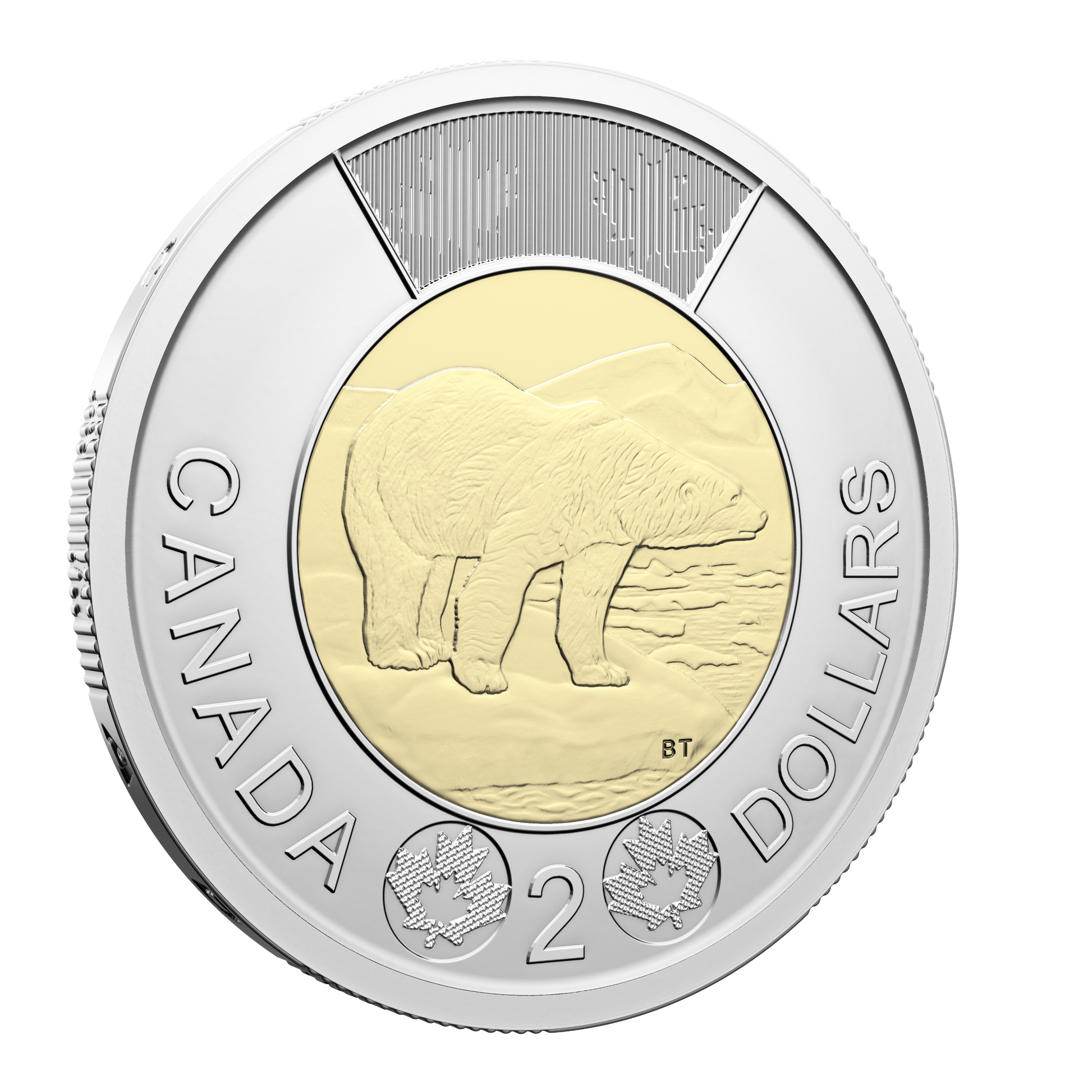 The Toonie’s polar bear has a name: Churchill. In 2006, we held a fun “Name Our Polar Bear” contest to mark the 10th anniversary of Canada’s first bi-metallic circulation coin, and Churchill won with 34 per cent of the votes. The runners-up? Wilbert and Plouf!
