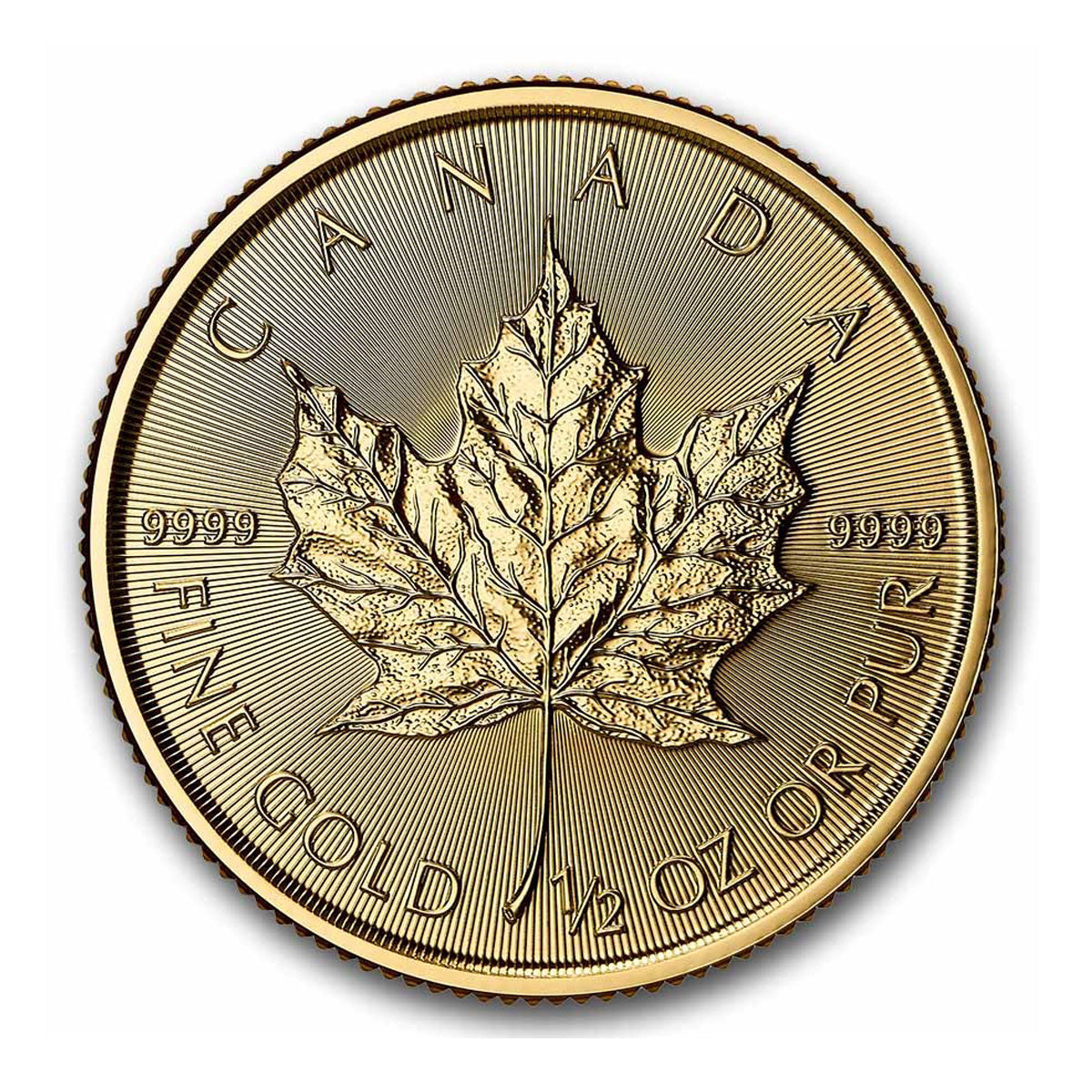 Of all the Canadian gold coins, the most popular include the Gold Maple Leaf coins, which were first struck in 1979. Now, the 2024 1/2 oz Canadian Gold Maple Leaf Coin is in Bullion Exchanges' stock. These fractional gold Maple Leaf coins contain 1/2 troy oz of .9999 fine gold. Because these coins are fractional, they are an inexpensive alternative but worthwhile investment that will still help you build a great gold portfolio.