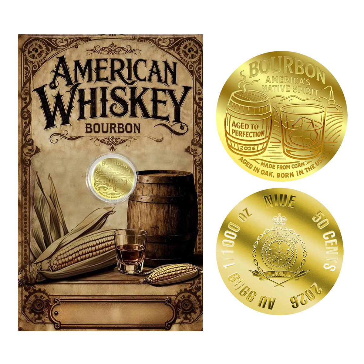 2026 Niue 50 Cents American Whiskey Bourbon 1/1000oz 24K .9999 Gold Coin in Card (No Tax)