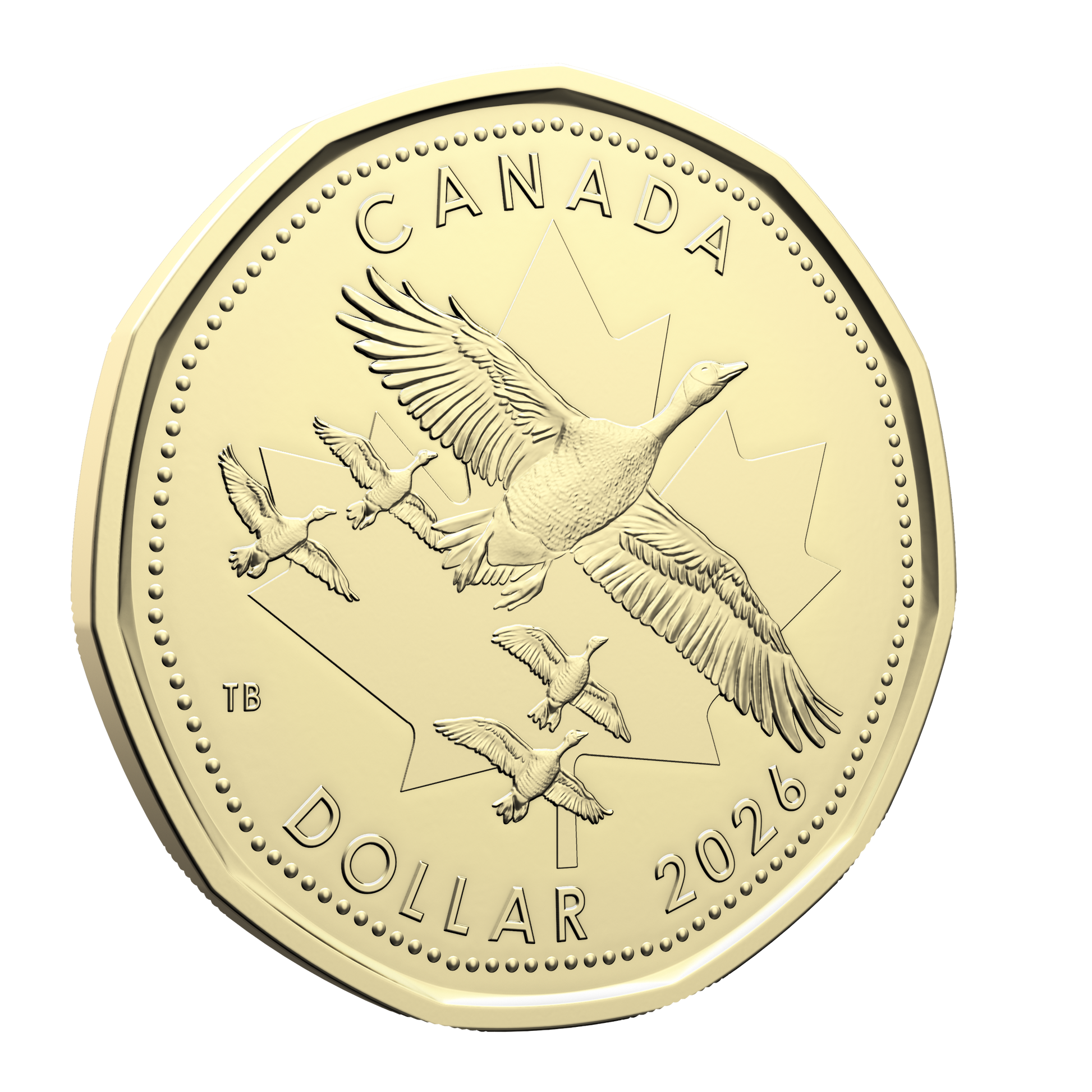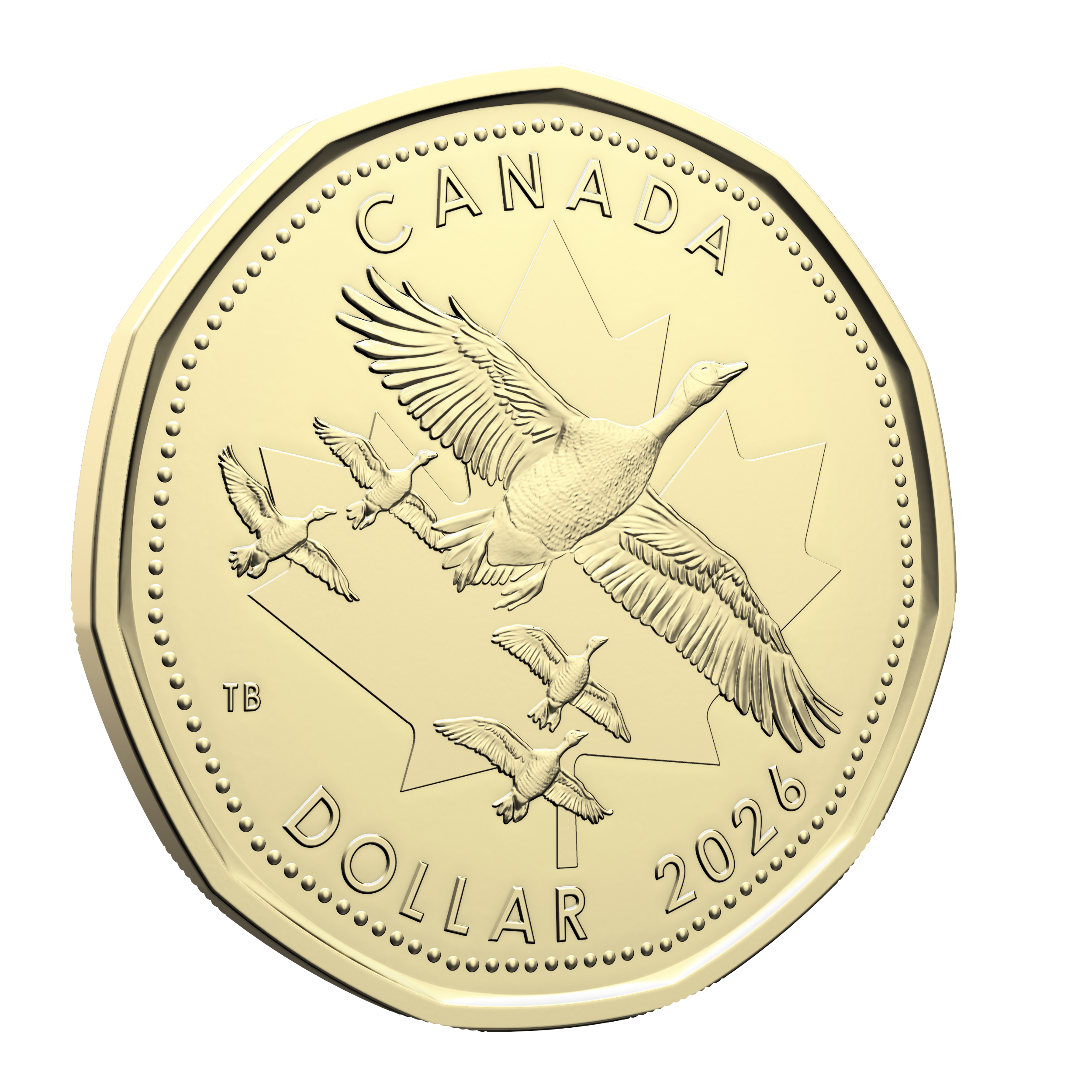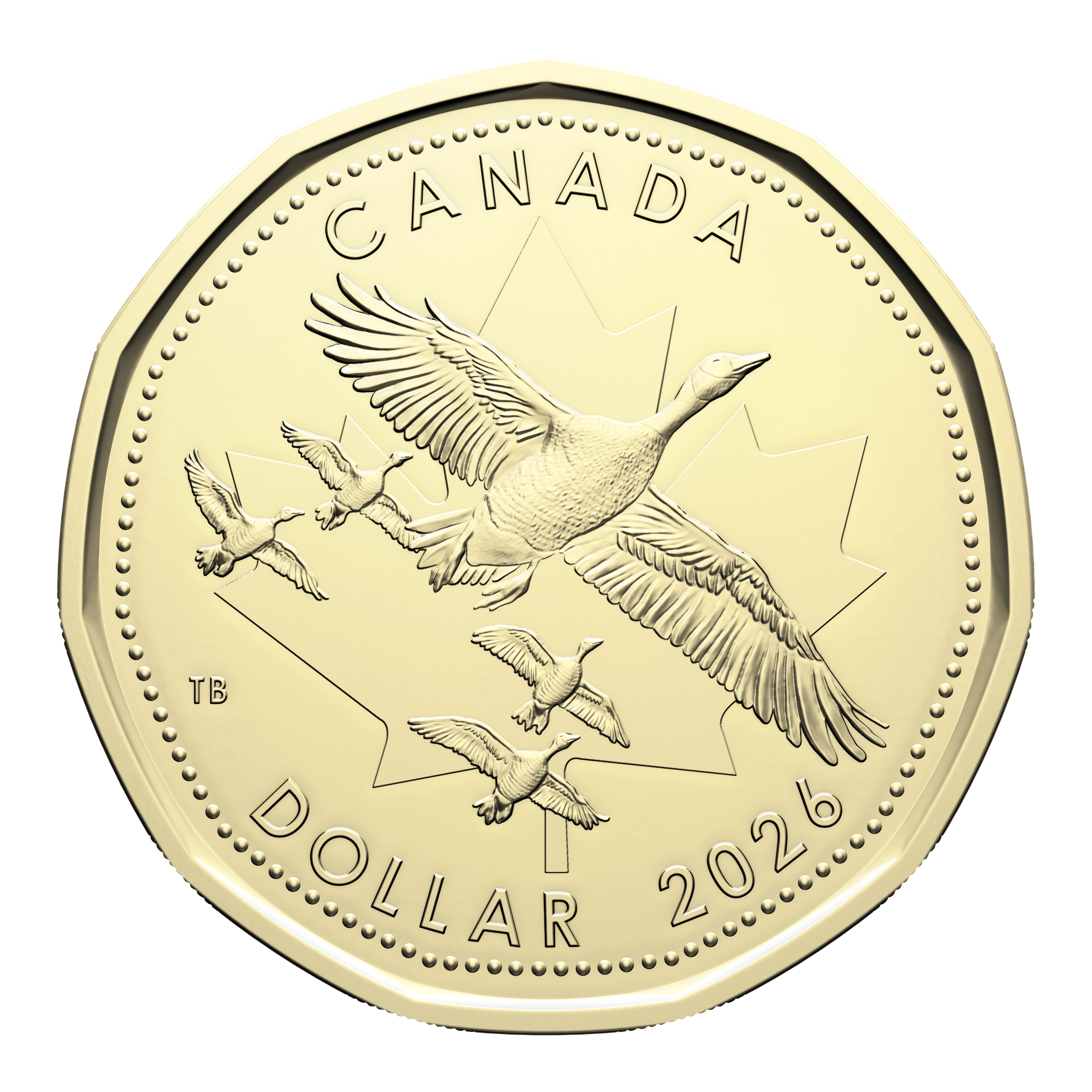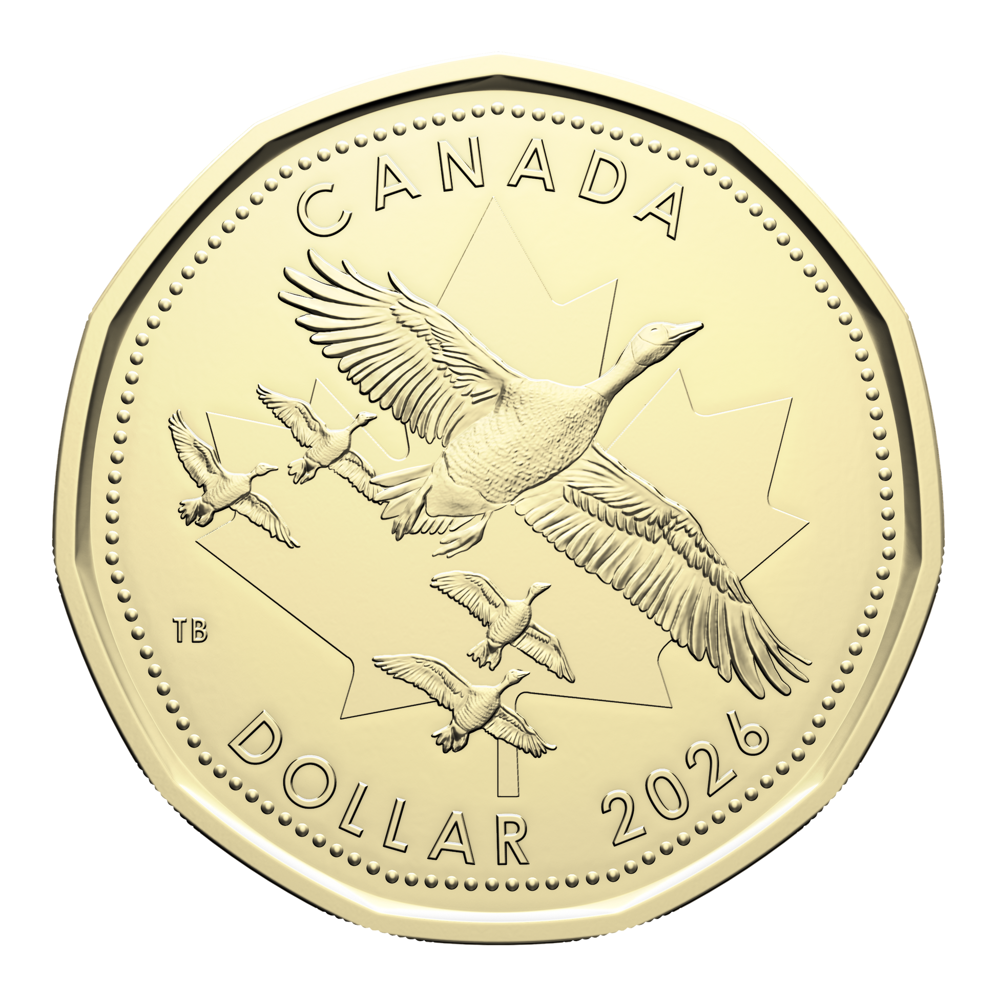 - A set-exclusive dollar. Instead of the classic Loonie, the $1 coin in this set features a patriotic flyby, with Canada geese flying in a V-formation and backed by a large maple leaf. This special-themed coin is only available as part of the 2026 O Canada Gift Card Set—it is not available on its own.
