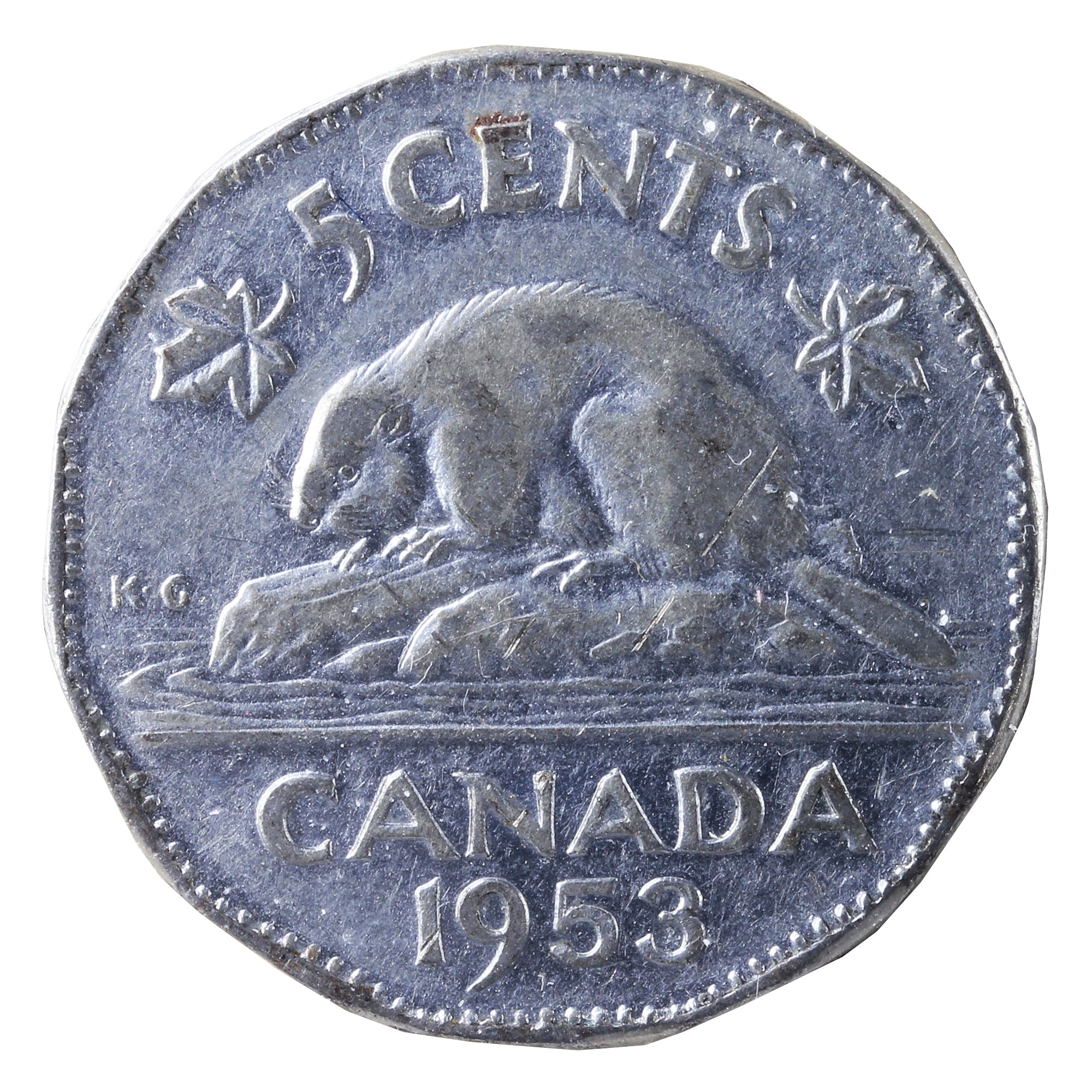 On the Canada 5-cent, these varieties are best distinguished on coins by observing the styles of the letters in the obverse legends; on the No Shoulder Strap variety, the letters are more flared (particularly the E and I of "DEI"), and the Maple Leaf on the reverse is further from the rim of the coin. Shoulder Strap varieties show more straight-sided I's, and the Maple Leaf on the reverse is closer to the rim. Some coins were minted with the opposite obverse and reverse as was typical, thus creating a mule (ie, Far Leaf Shoulder Strap, Near Leaf No Shoulder Strap).