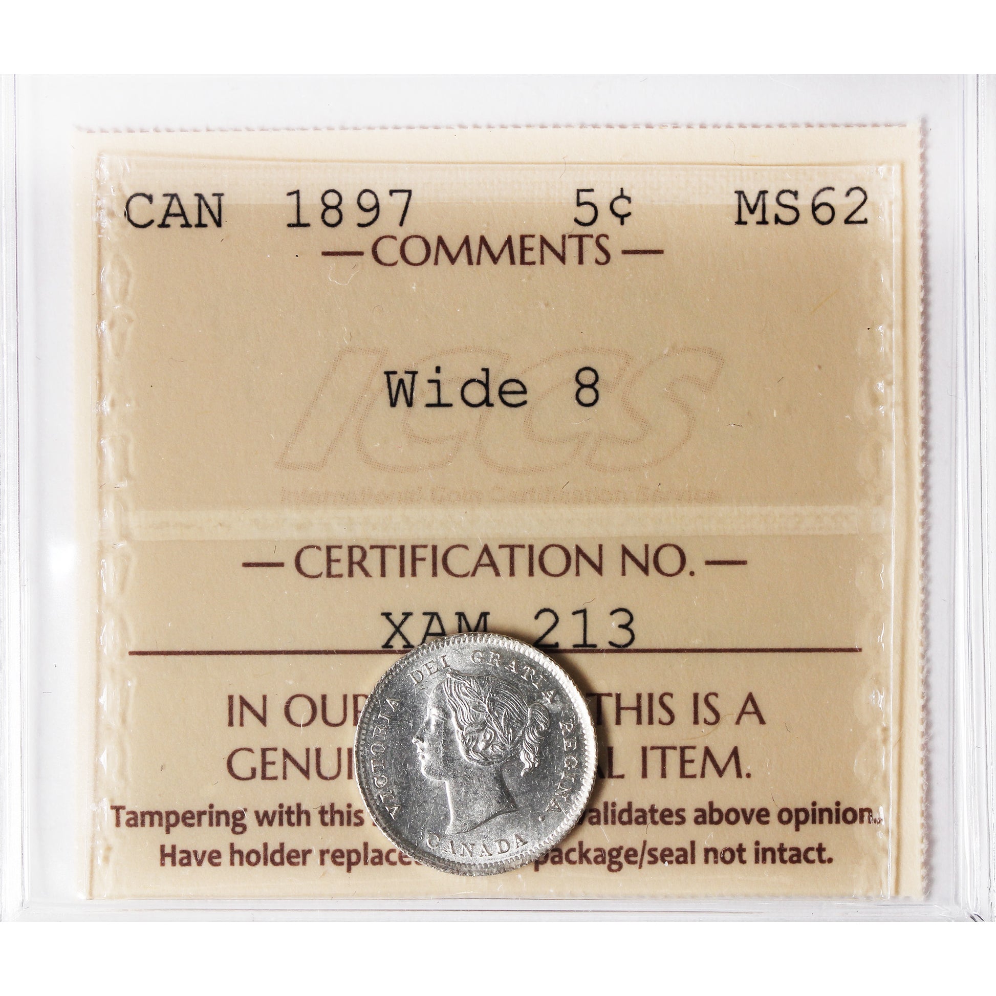 1897 Wide 8 Canada 5-cents ICCS Certified MS-62