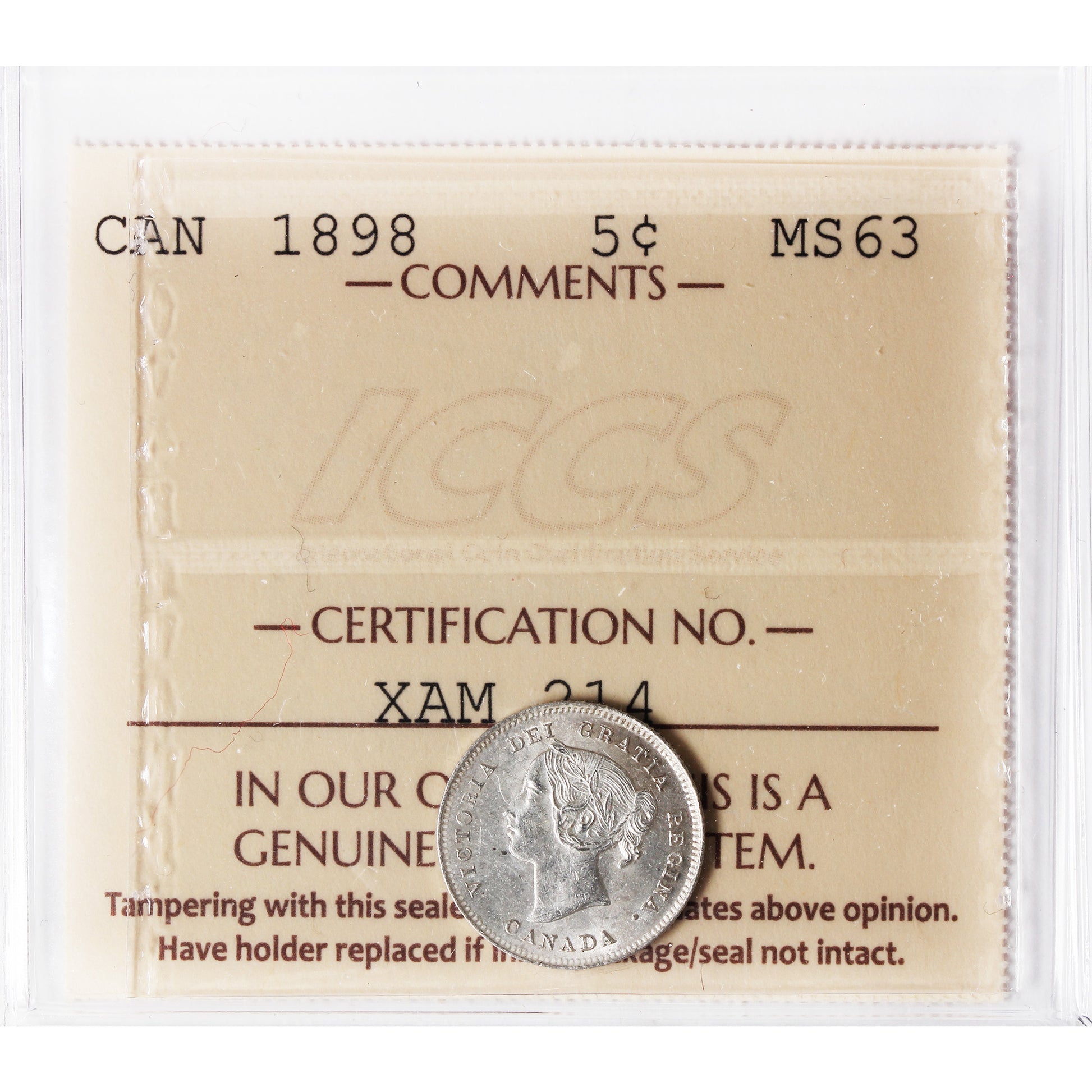 1898 Canada 5-cents ICCS Certified MS63 (XAM 214)