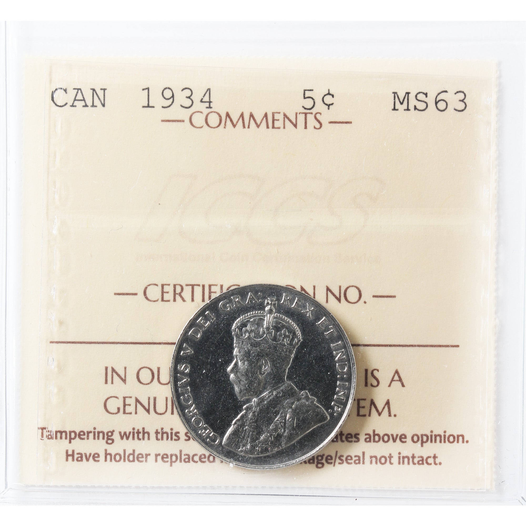 1934 Canada 5-cents ICCS Certified MS63 (XVR 309)
