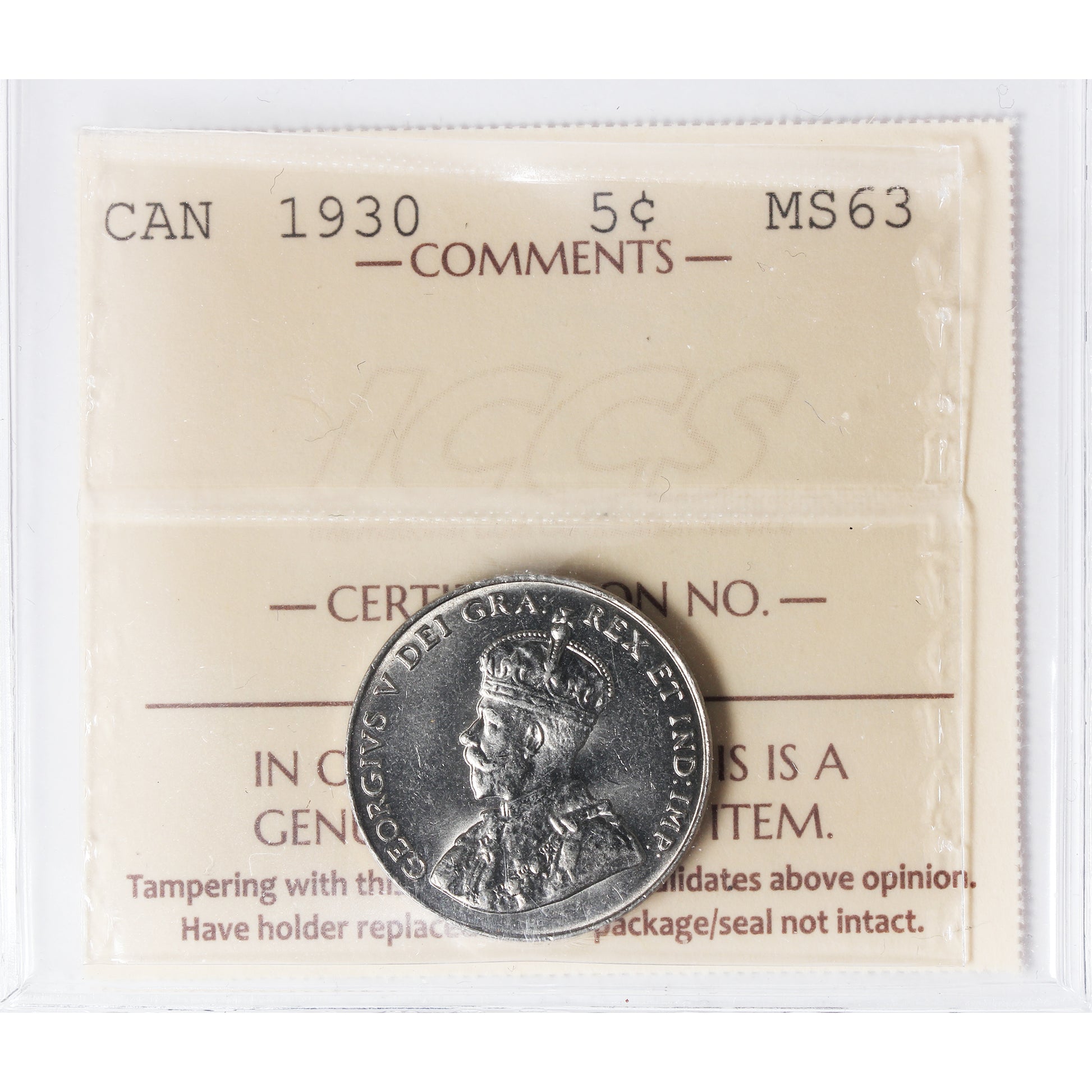 1930 Canada 5-cents ICCS Certified MS-63