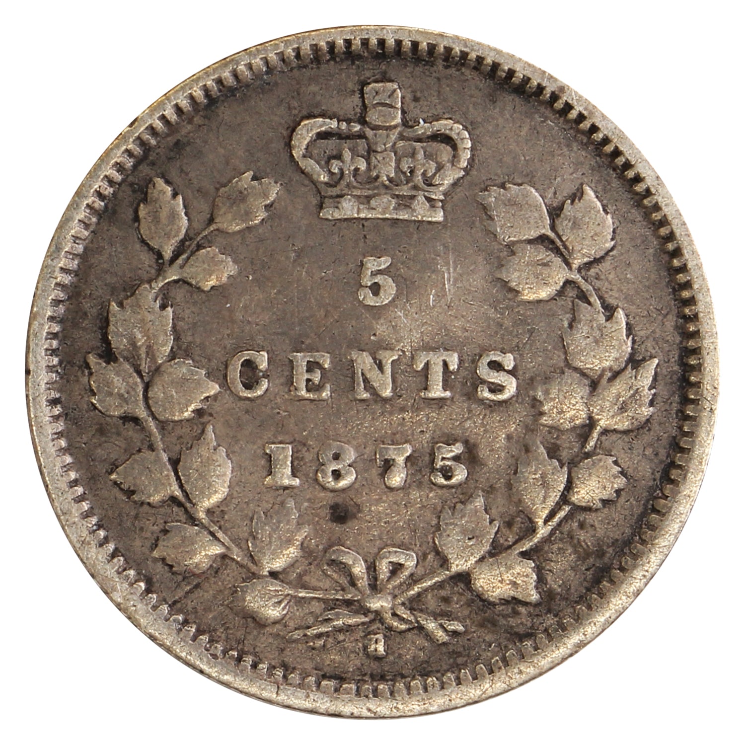 1875H Large Date Canada 5-cents Very Fine (VF20) $