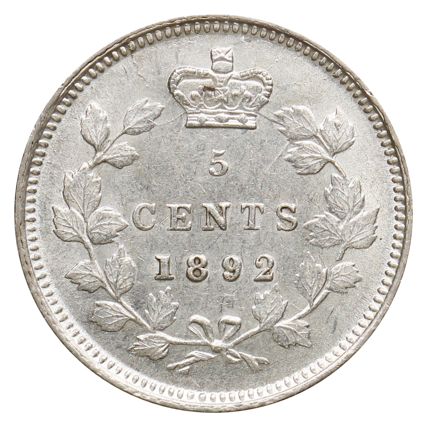 1892 Obv. 2 Canada 5-cents Almost Uncirculated (AU50) $