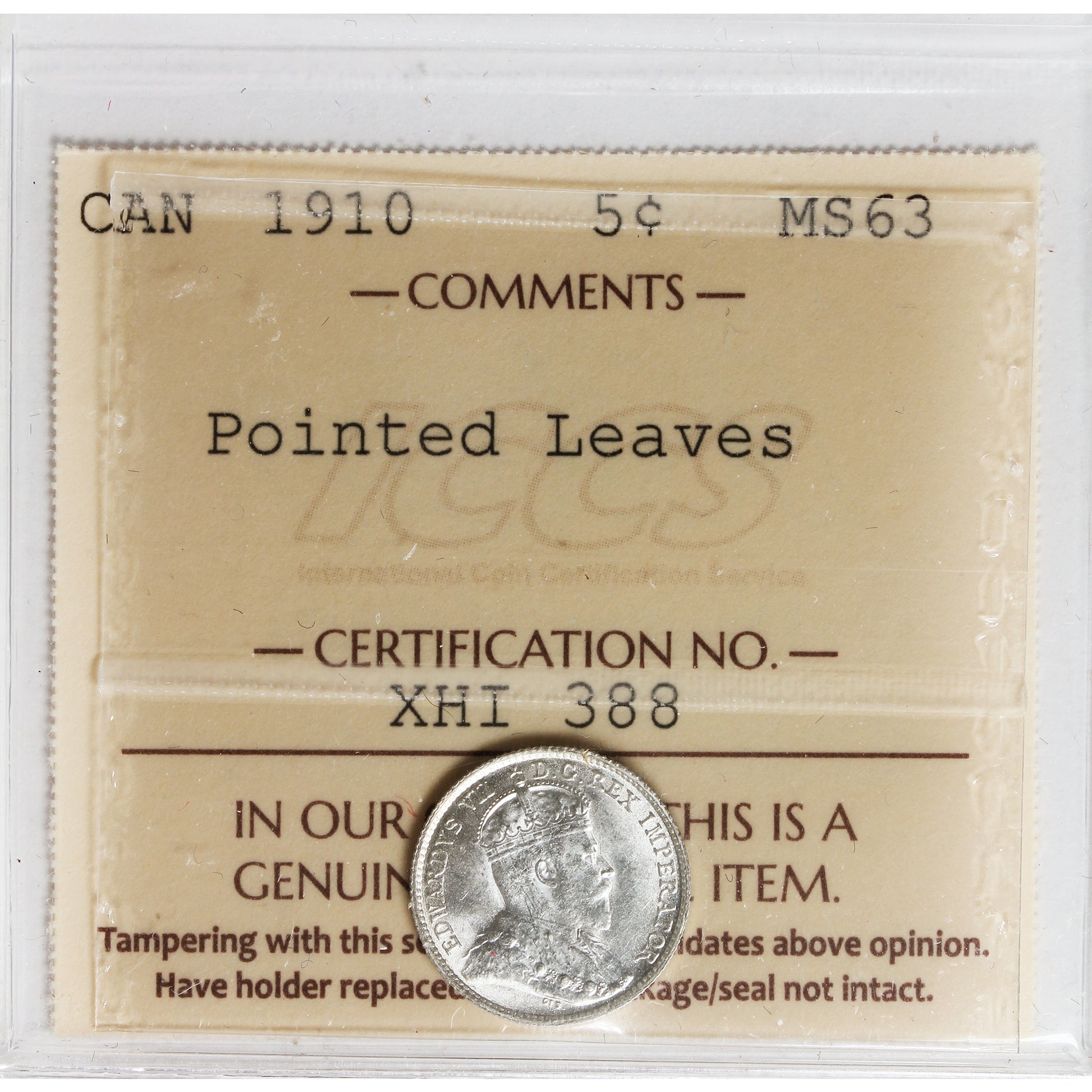 1910 Pointed Leaves Canada 5-cents ICCS Certified MS63