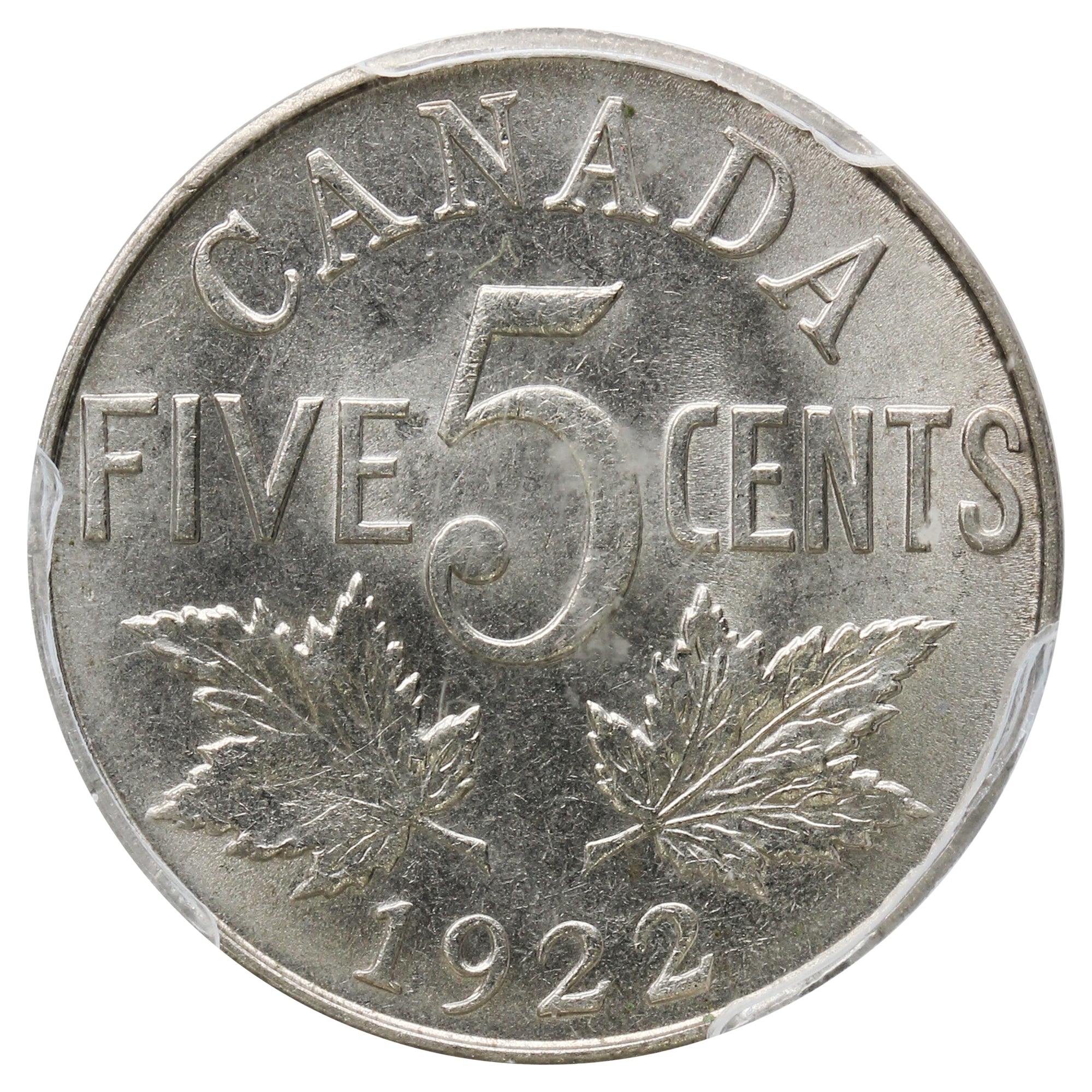 1922 Near Rim Canada 5-cents PCGS Certified MS63