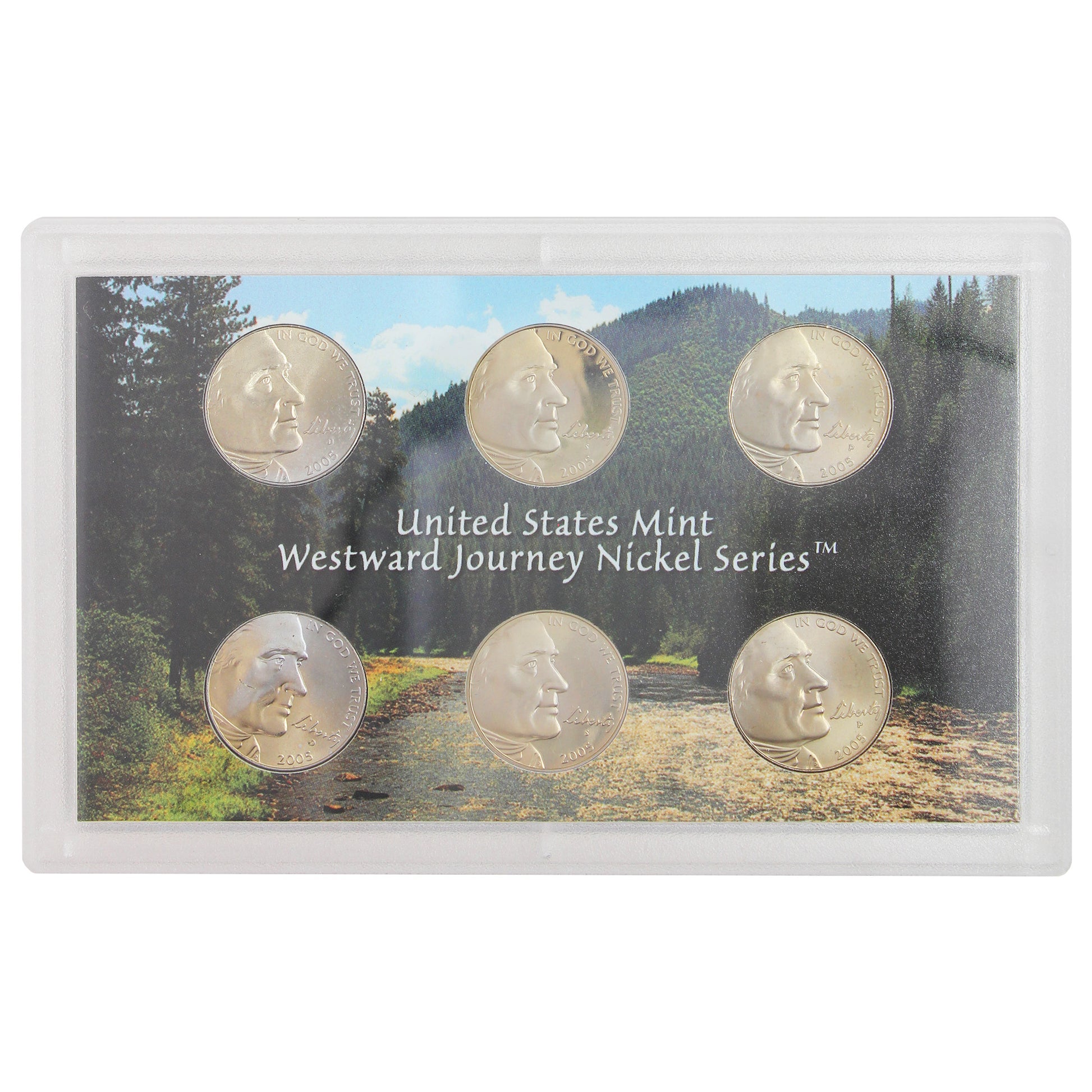 2005 USA Westward Journey Nickel Series Coin Set comes in it's Original packaging. Comes with 2-D mint, 2-P mint, and 2-S mint nickels and in colourful plastic case. Please note the sleeve show some light wear.