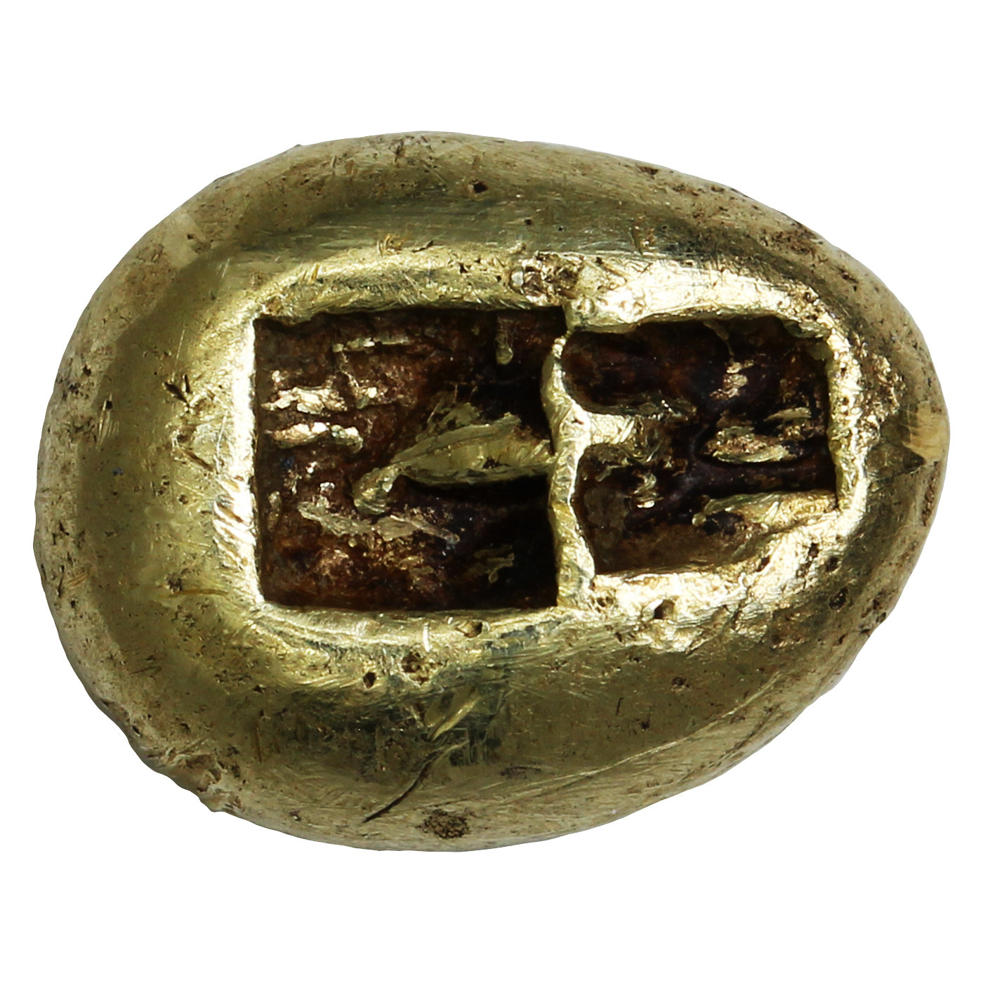 The Lydians and Ionian Greeks—living in close contact—are both contenders for being the inventors of coinage, but archaeological finds suggest that the earliest pieces were struck in Ephesus or nearby Ionian cities under the influence of the Lydian kingdom. The coins were typically bean-shaped or irregularly oval, stamped with a simple punch mark or emblem on one side and a rough incuse punch on the other.
