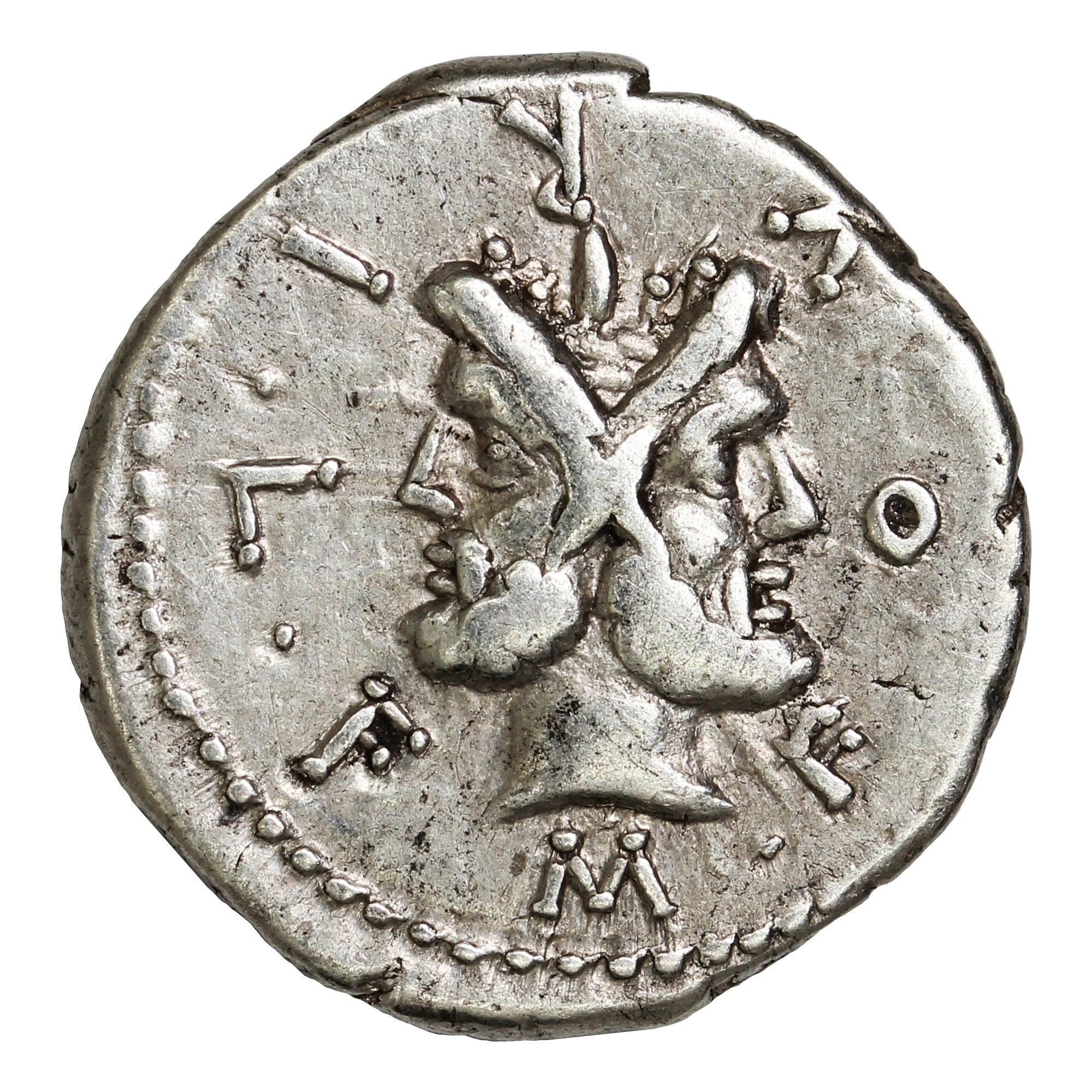 Obverse: The laureate and bearded two-faced head of the Roman God Janus, legend around.