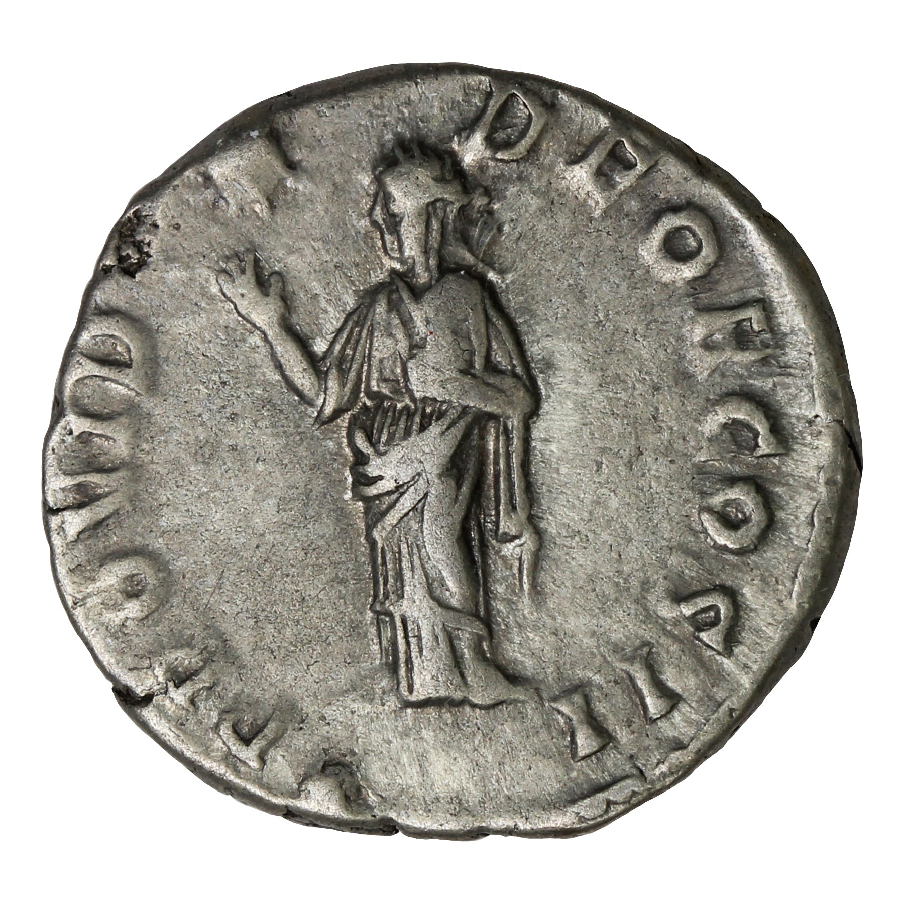 Reverse: Providentia, draped and standing facing left, holding her right hand above hear head and pointing to a star, left hand resting upon her breast.