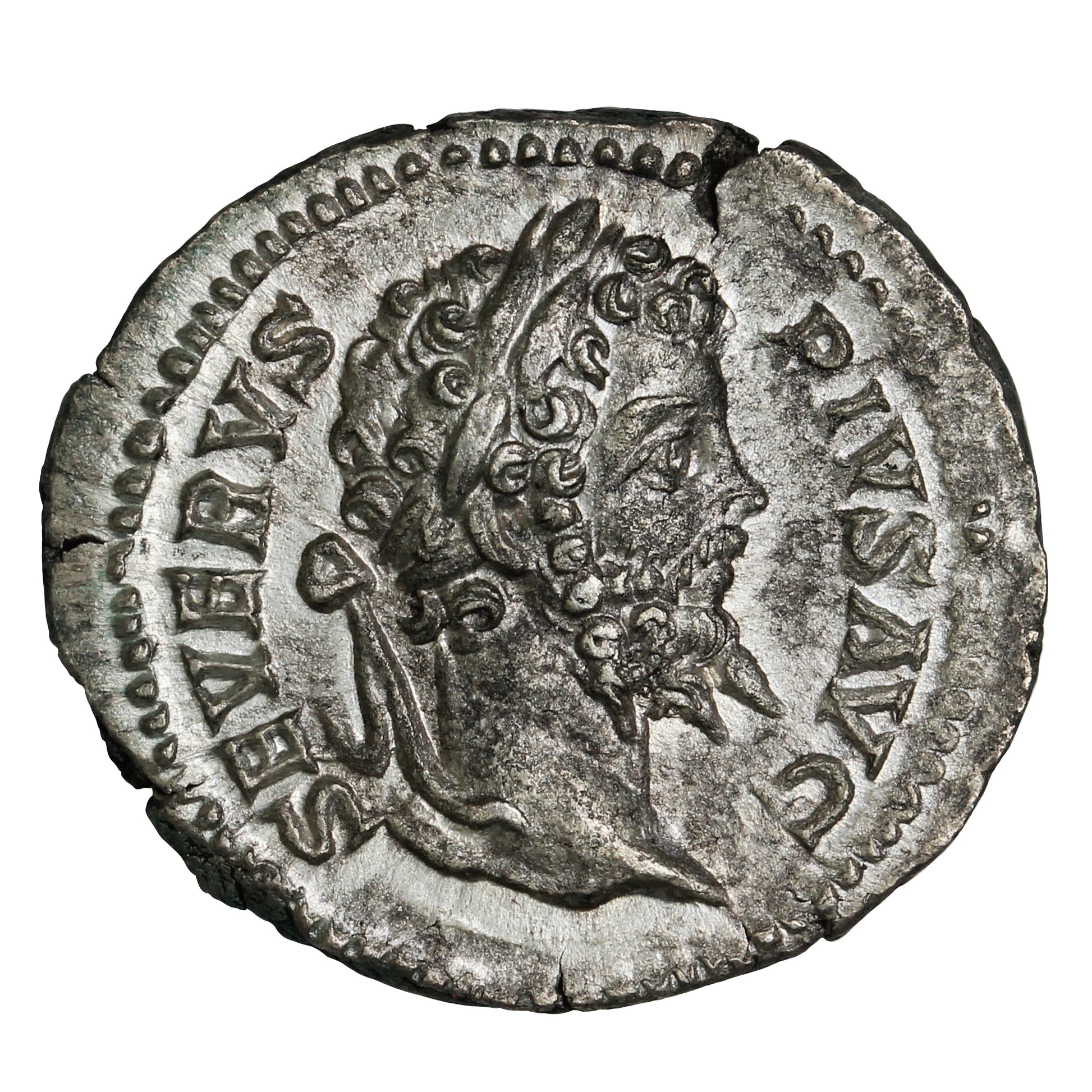 Obverse: Laureate head of Septimius Severus facing right, with the legend around.