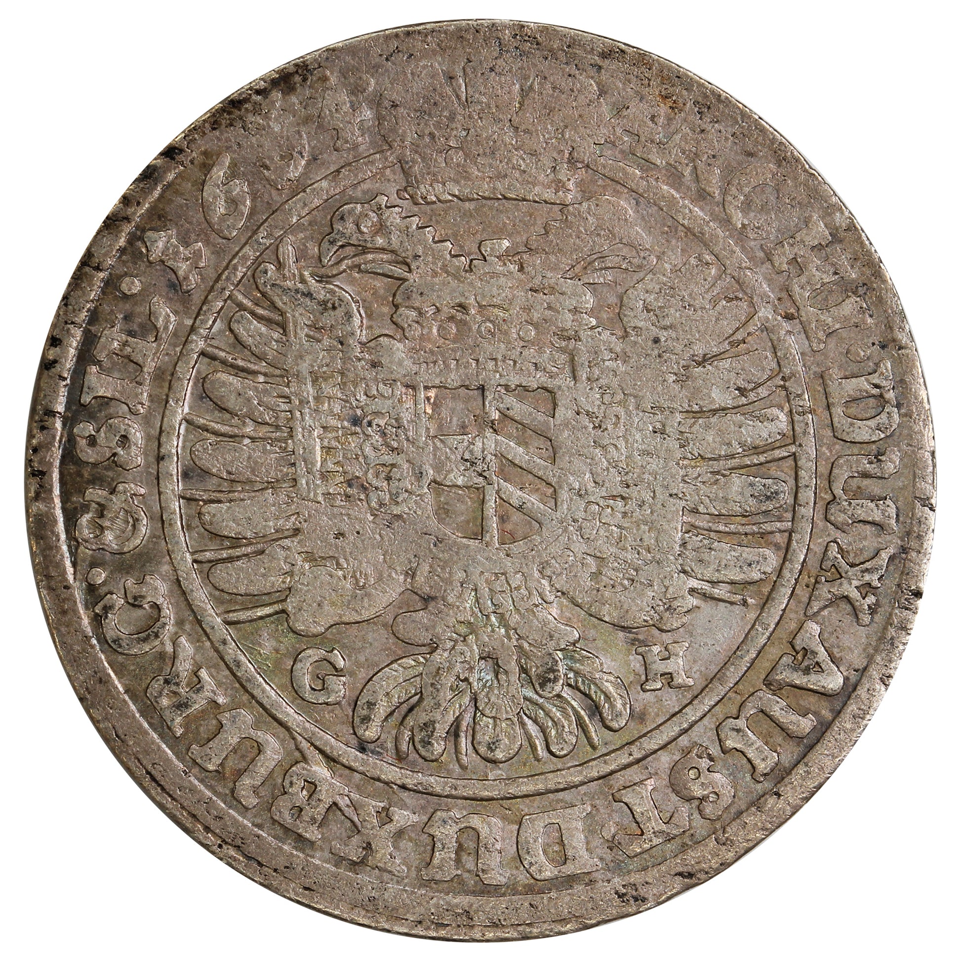 Austrian States 1664GH Leopold I Silesia 15 Kreuzer VF-EF (VF30)