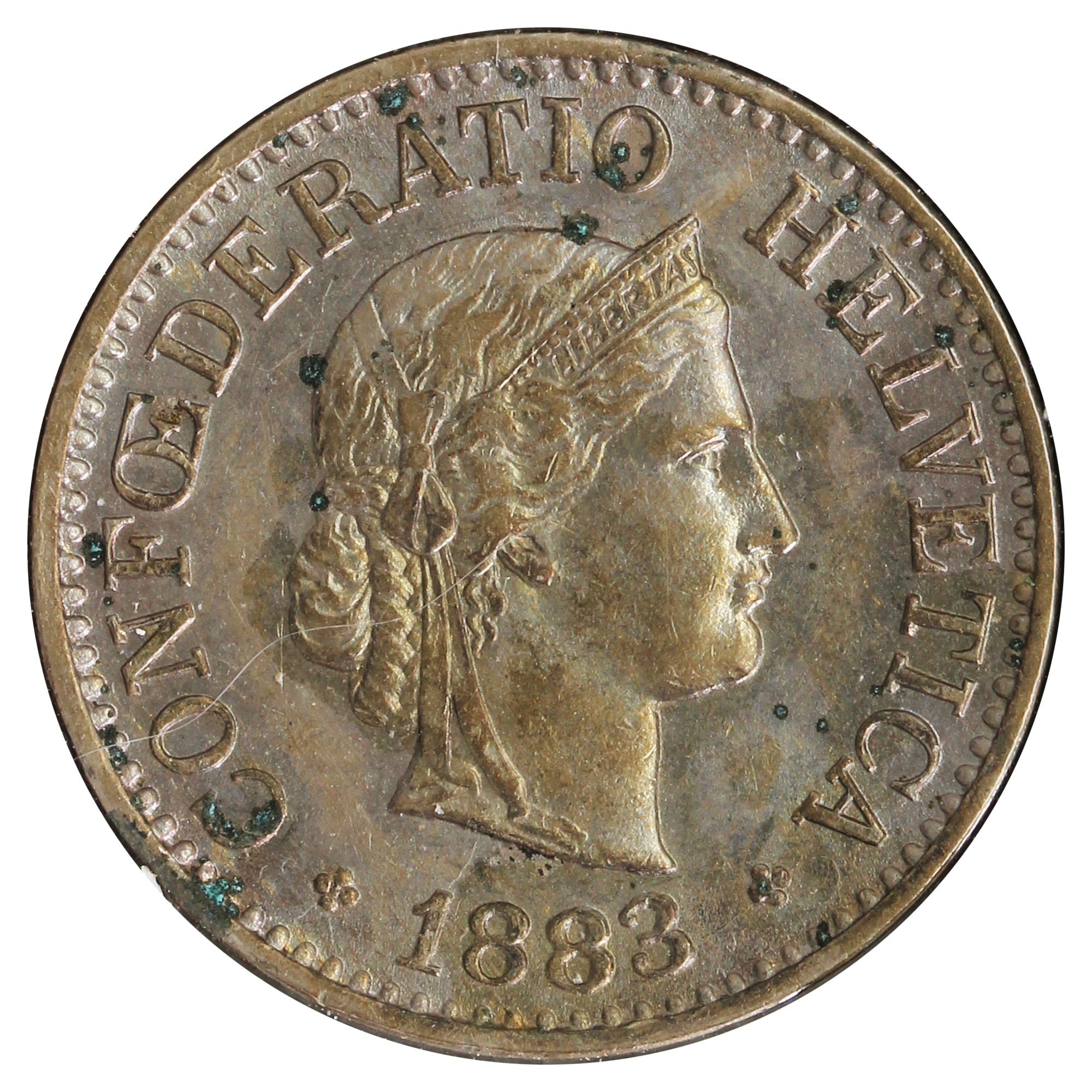 Switzerland 1883 10 Rappen Almost Uncirculated (AU50) Impaired